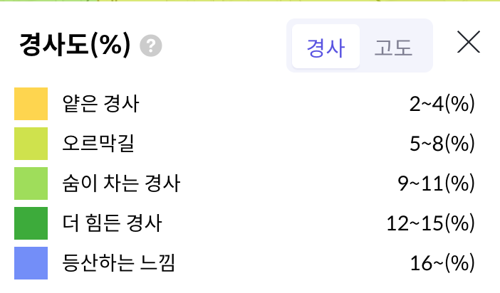 우측 사진은 호갱노노 기준 "숨이차는 경사" 에 해당하니