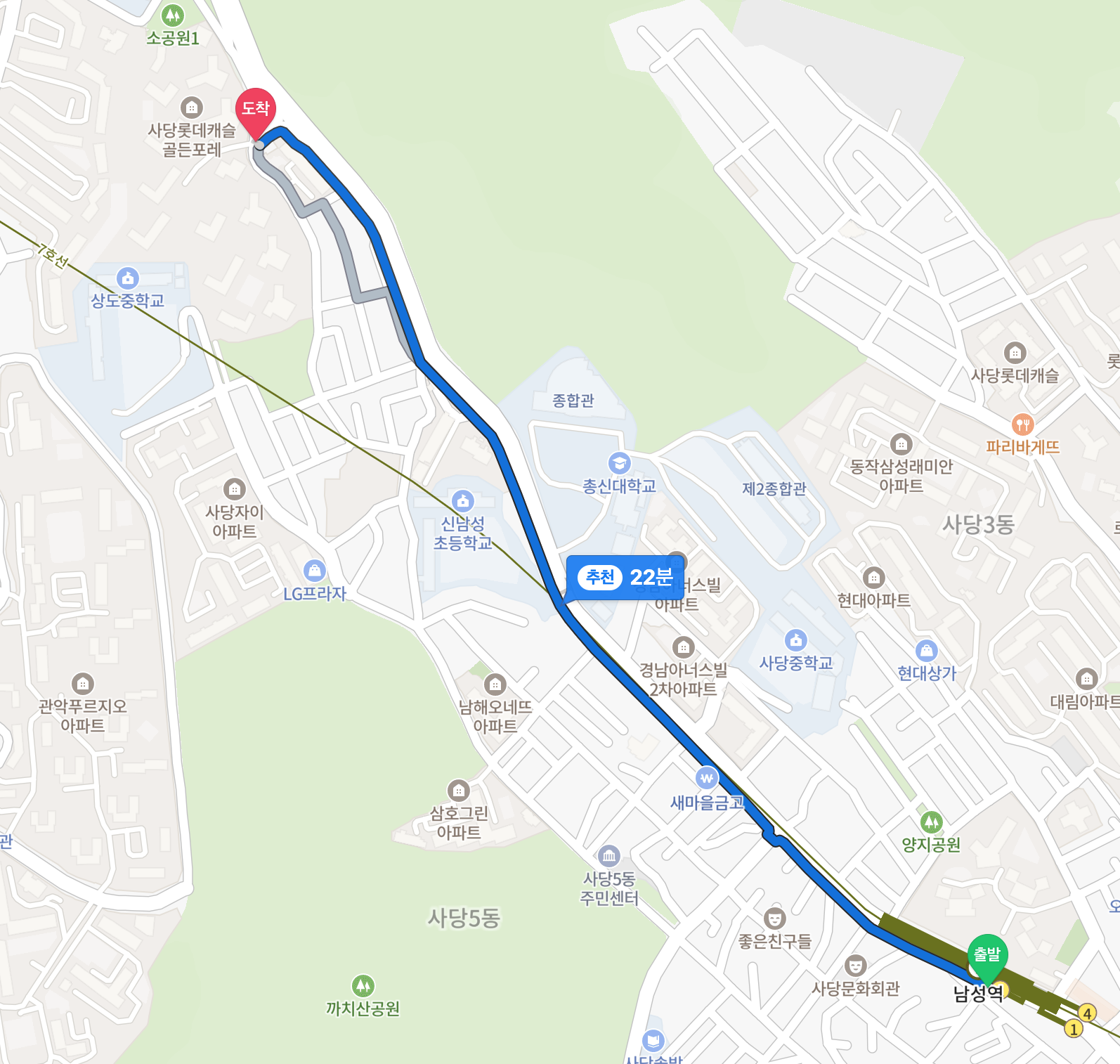 7호선 남성역에서 하차했습니다.