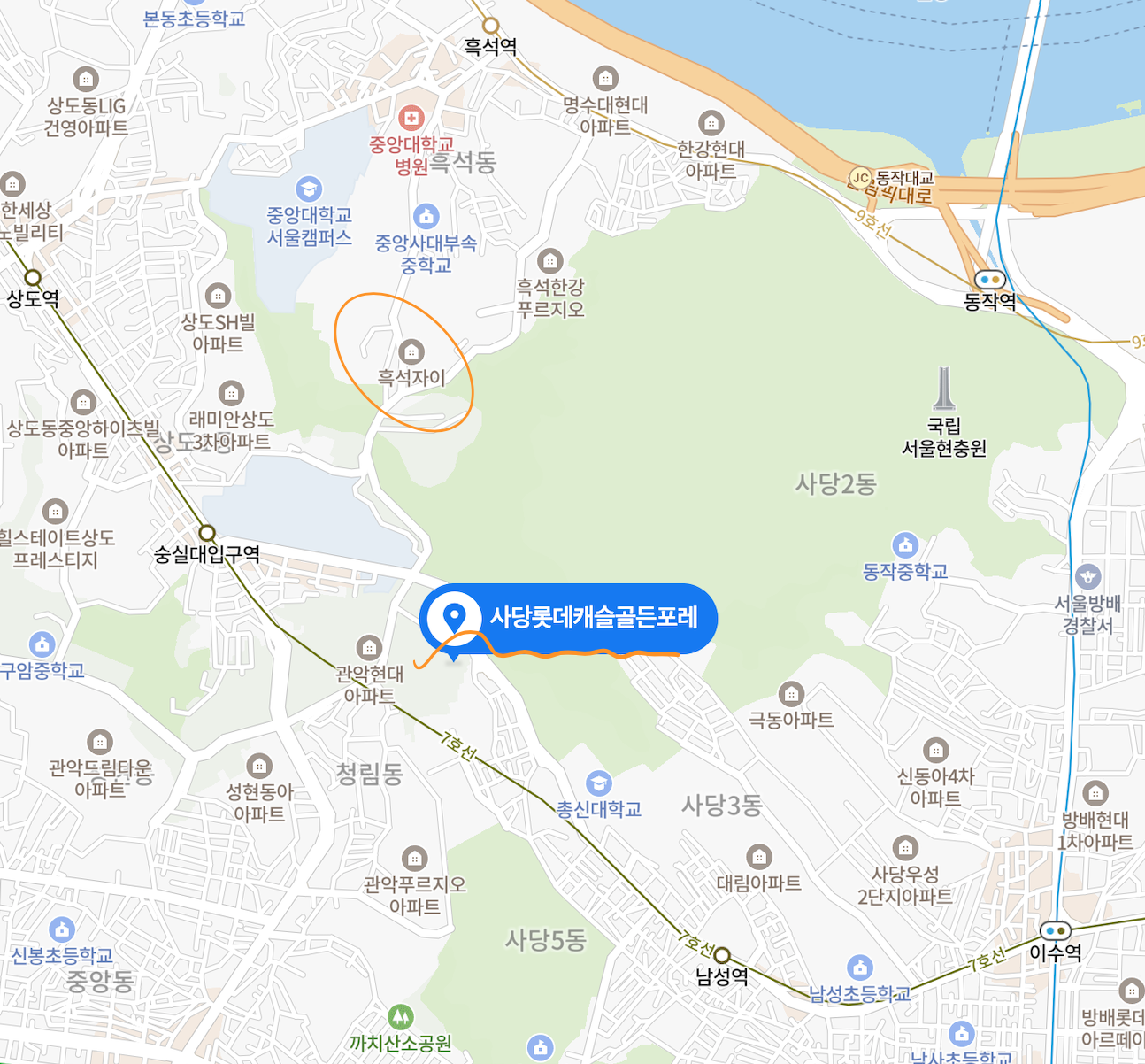 사당 롯데캐슬 골든포레의 지도상의 입지는
