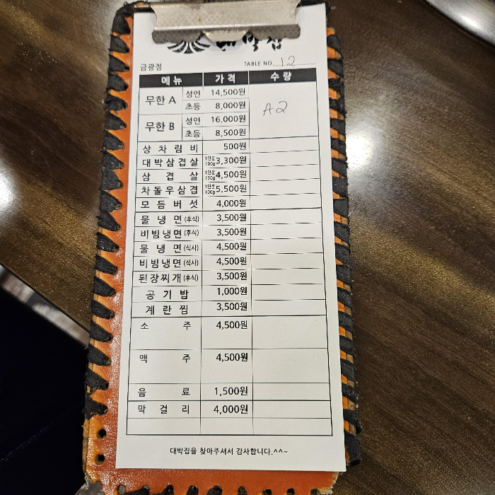 저희는 우삼겹을 집에서 자주 먹기에 돈을 더 주고 사먹고 싶지는 않아서 무한 a 를 주문했습니다.