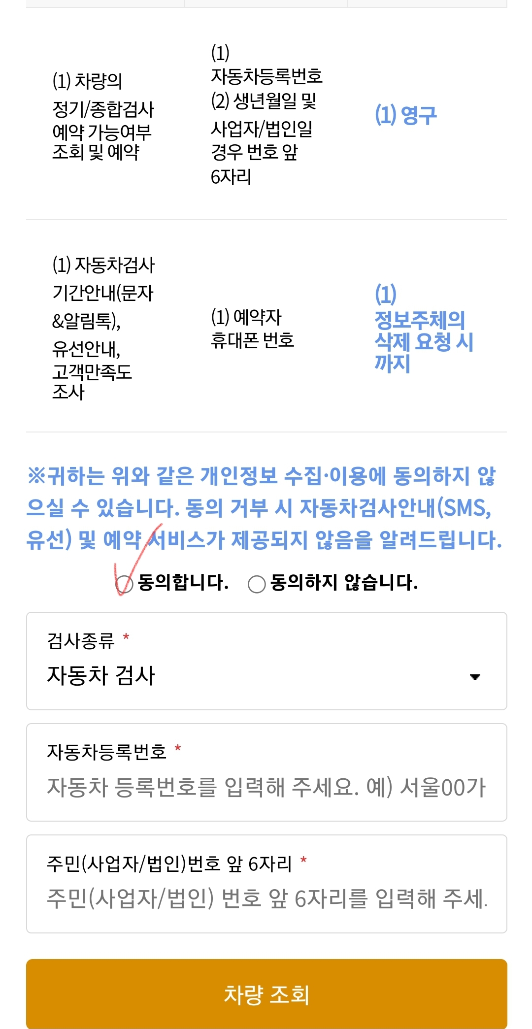 자동차 번호와 주민번호 등 필요한 정보를 입력하고 다음 화면으로 넘어갑니다.