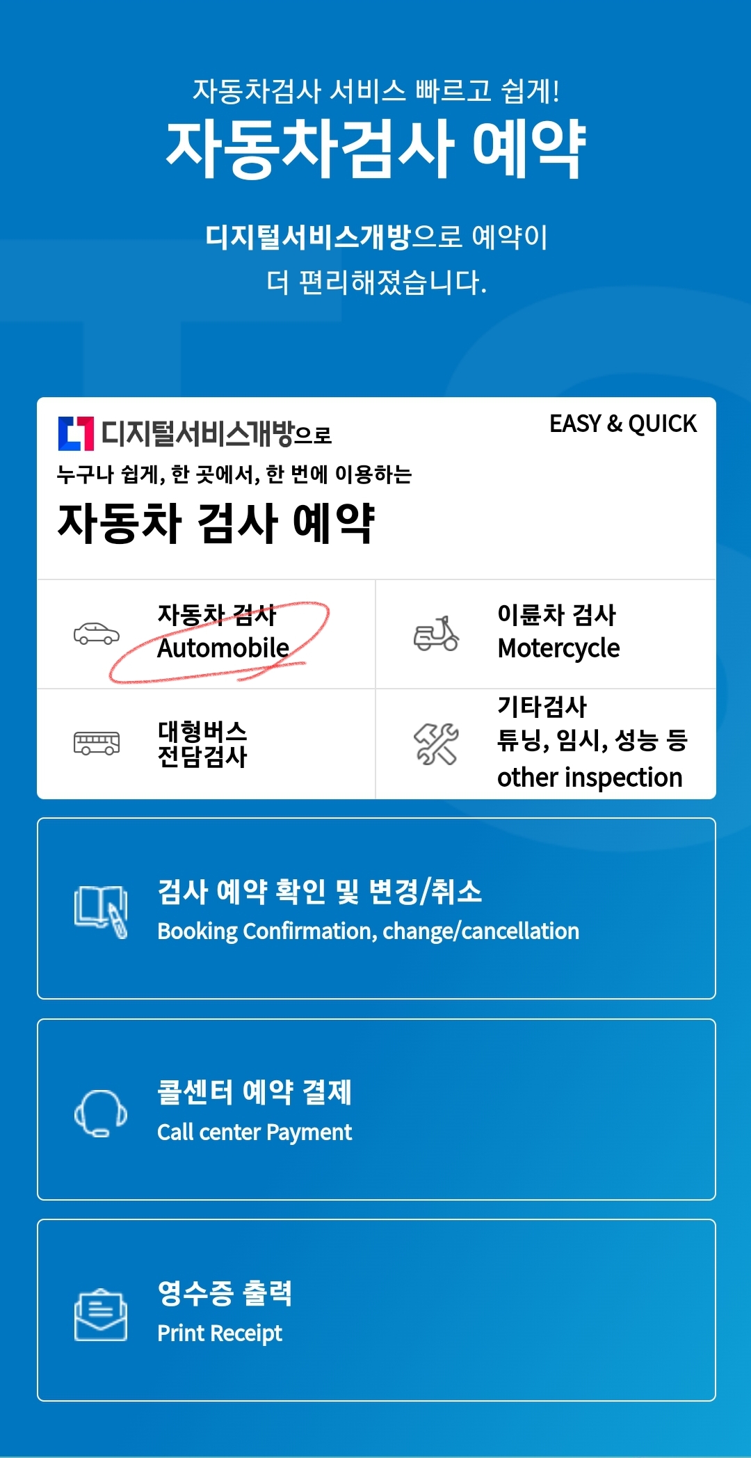 자동차 검사 예약은 공단검사소 또는 민감검사소에서 진행 가능한데