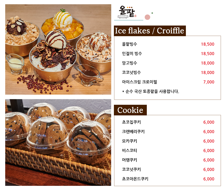 올팥은 팥빙수 메뉴가 인기가 많은데요,