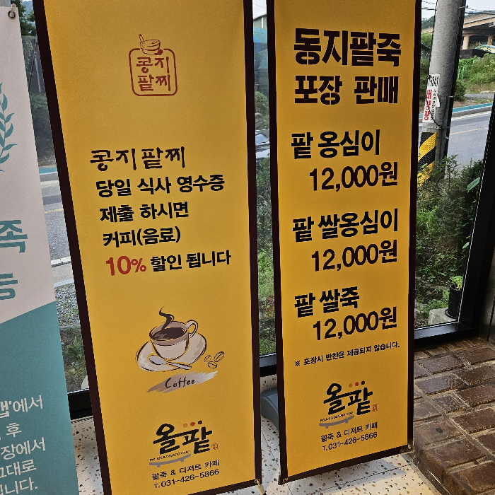 올팥은 북청계톨게이트 근처에 위치한 팥죽/디저트 전문점 입니다.
