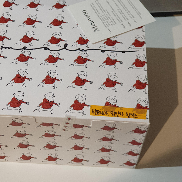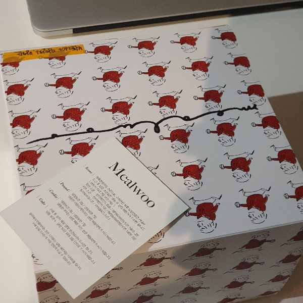 그리고 빨간 스웨터를 입은 아이들과 케이크 박스 중간에 흘겨서 써진 mealwoo...