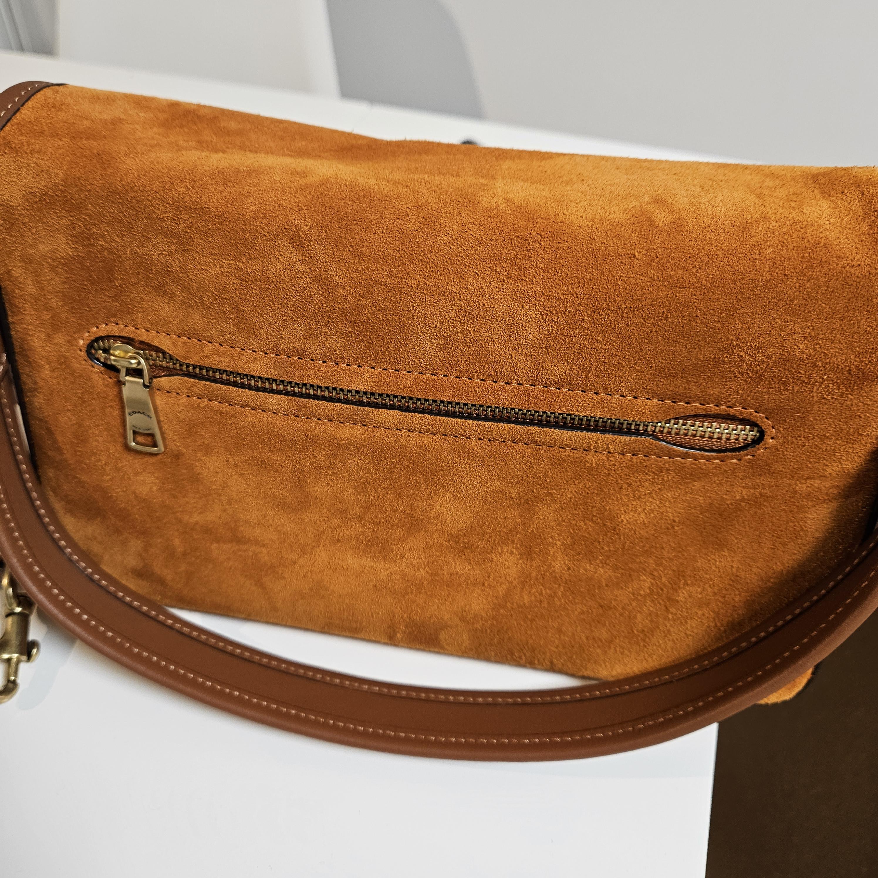 스웨이드의 소재감과 가방의 색감이 컨트리 감성이라
