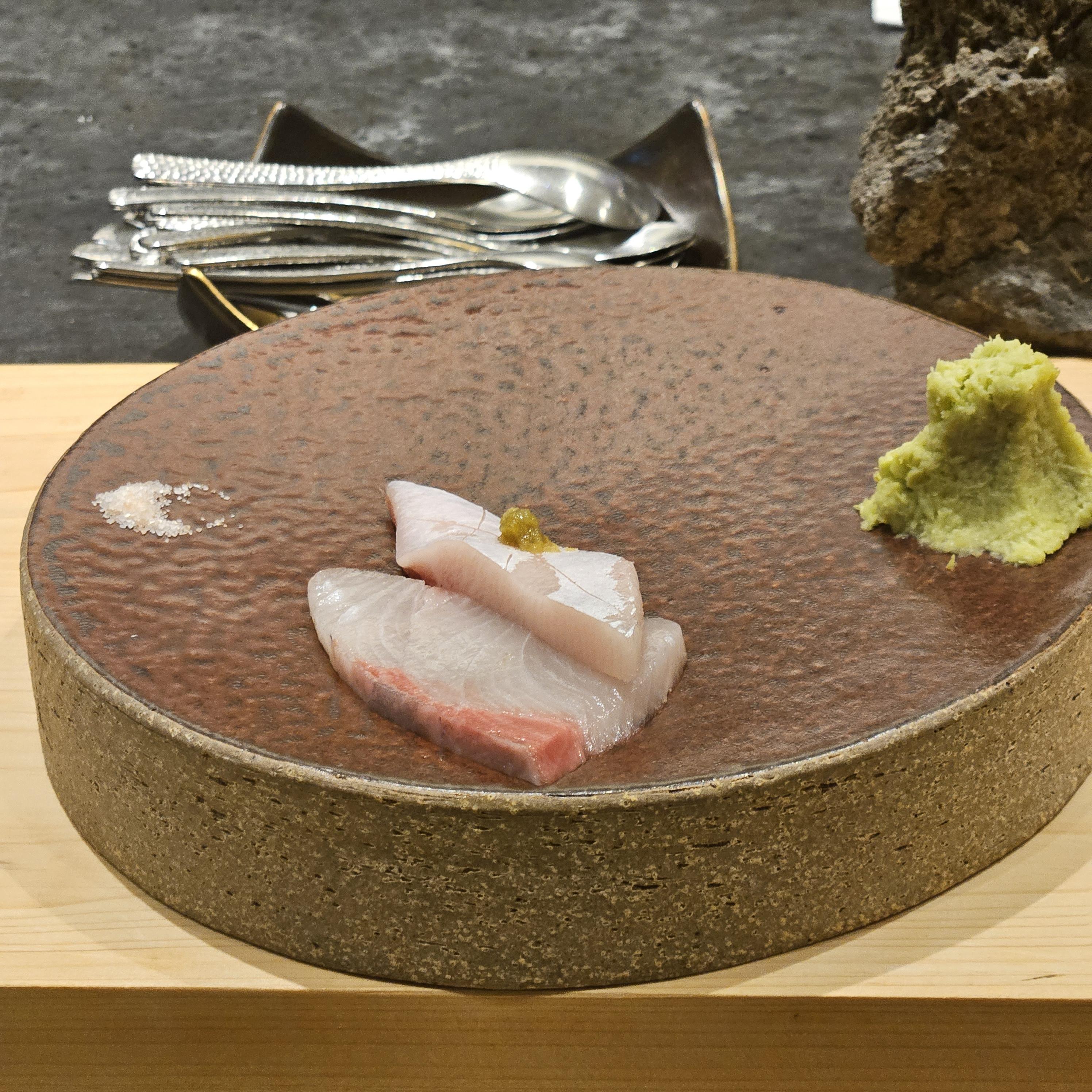 사시미가 나옵니다. 왼쪽은 광어 오른쪽은 방어 뱃살 입니다.