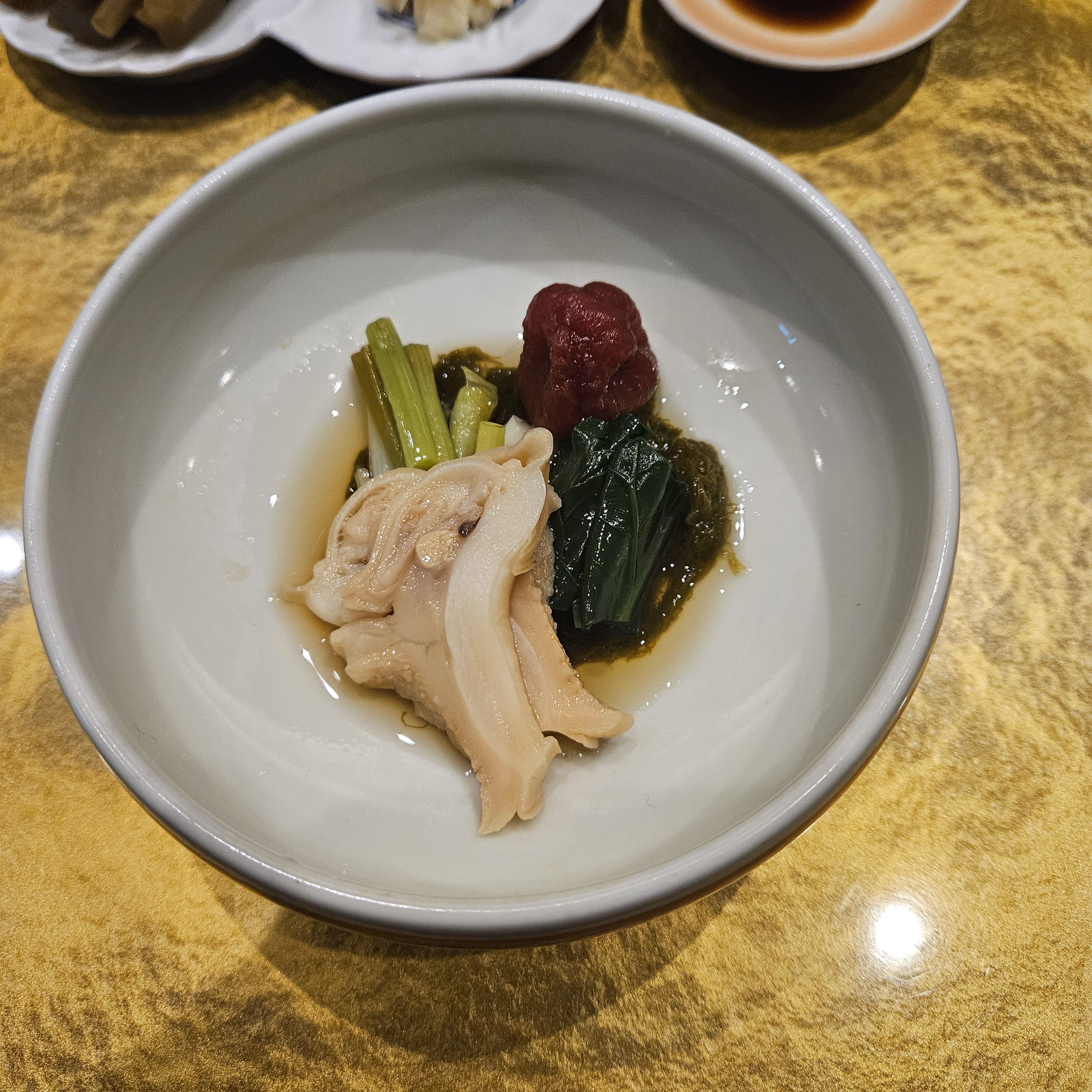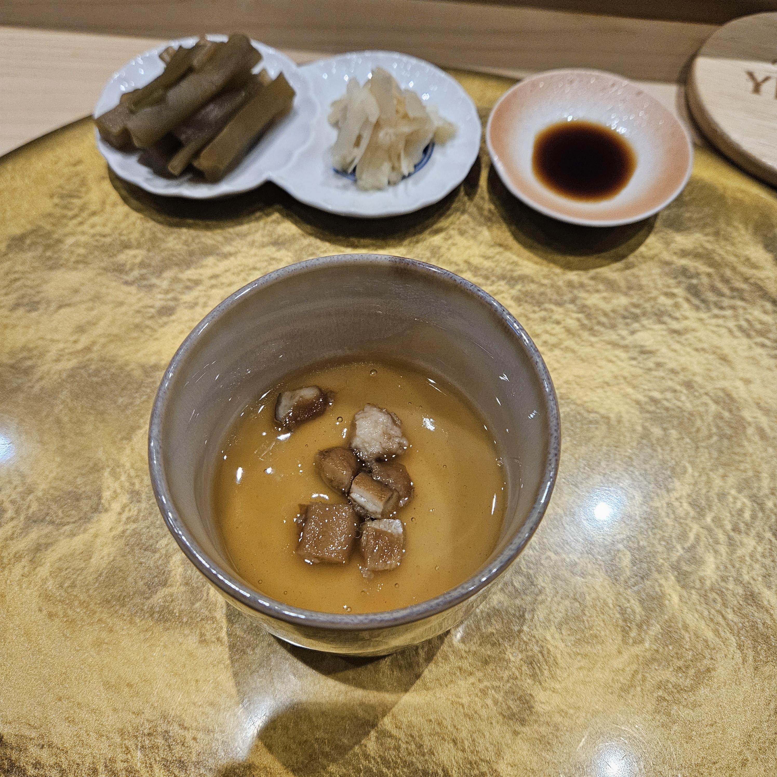 처음에는 장어와 계란으로 만든 에피타이저가 제공됩니다.