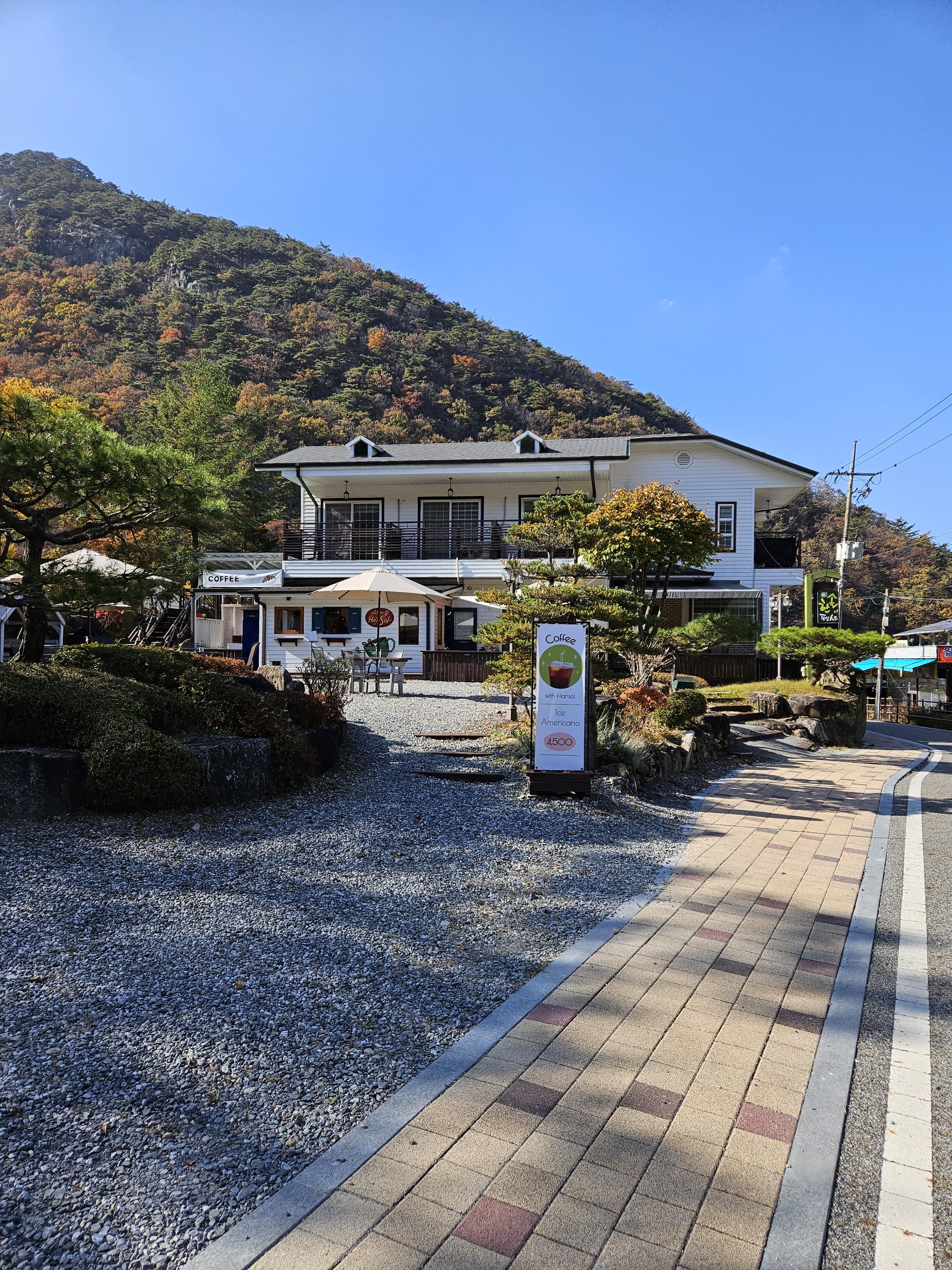 건물은 펜션이고 작은 공간을 테이크아웃 전용 카페로 사용하고 있는 한솔펜션(카페)