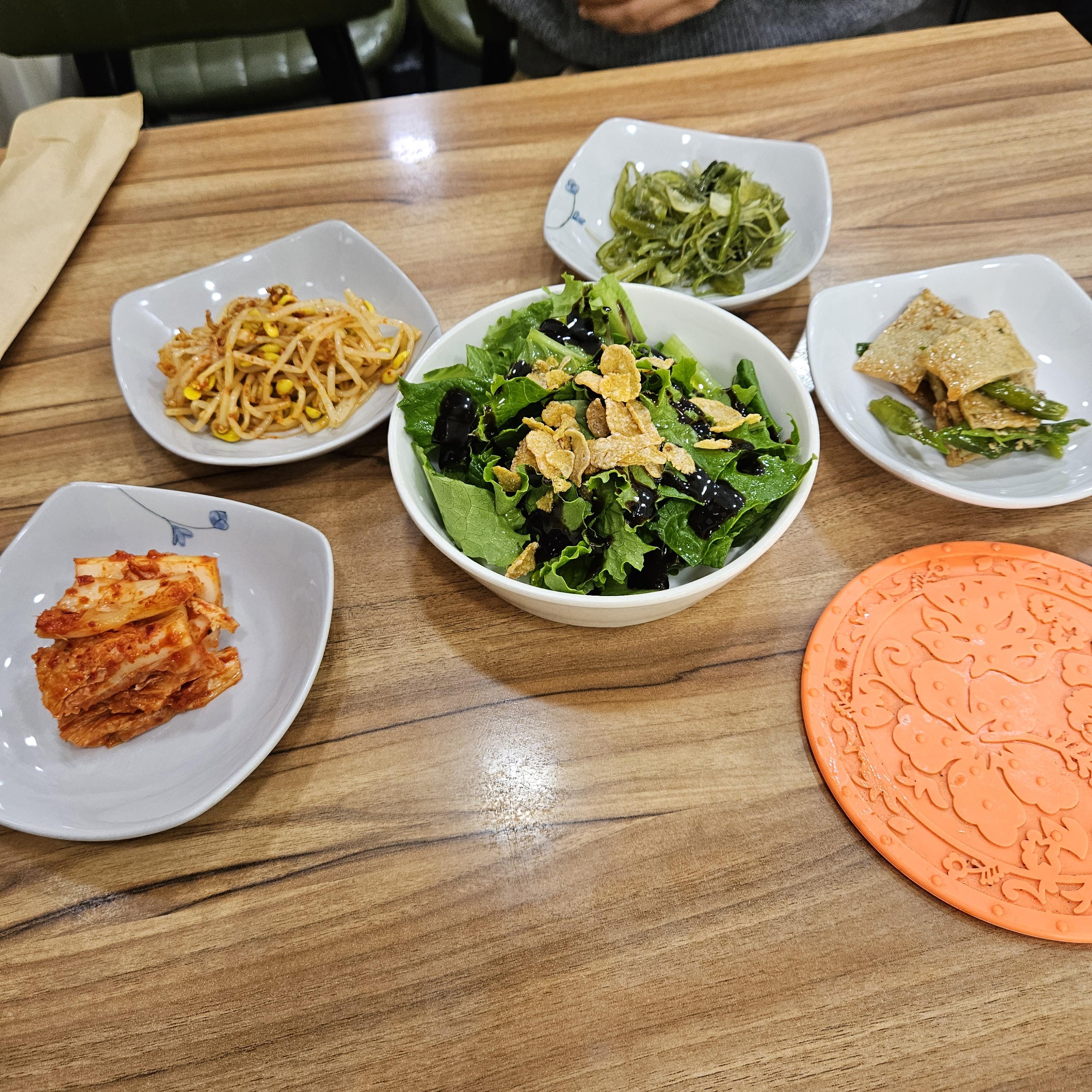 메뉴를 주문하면 샐러드와 기본 찬이 나옵니다.