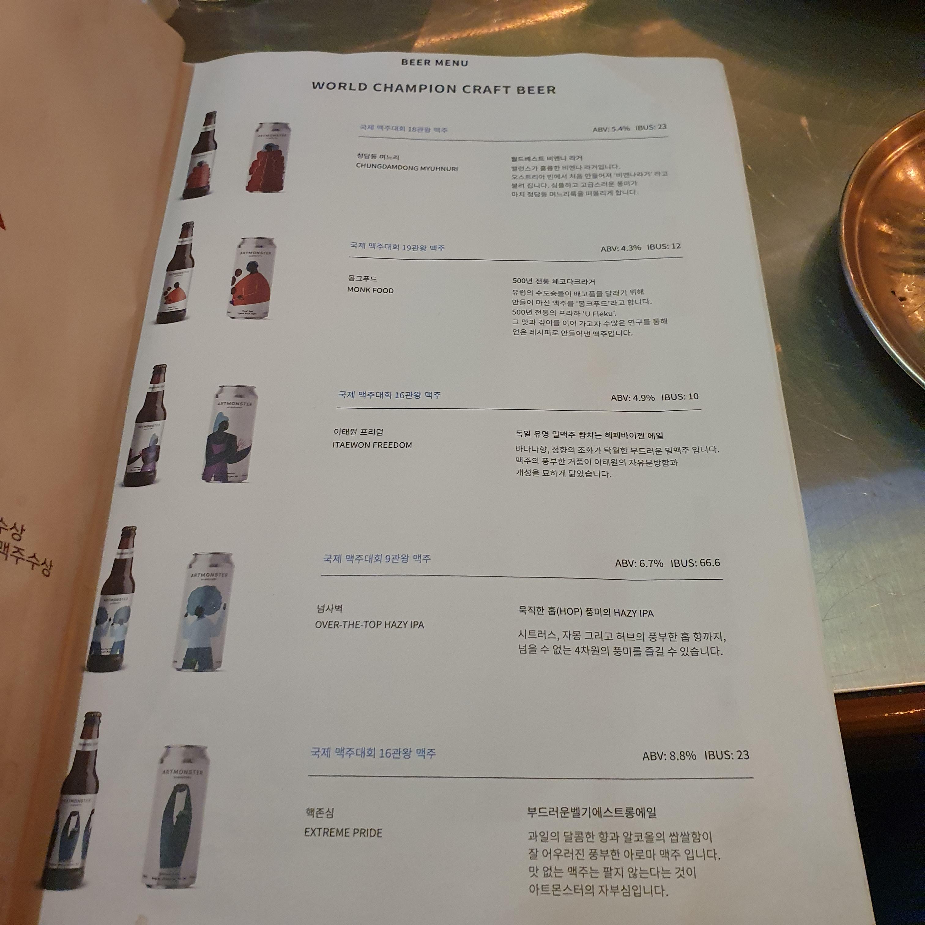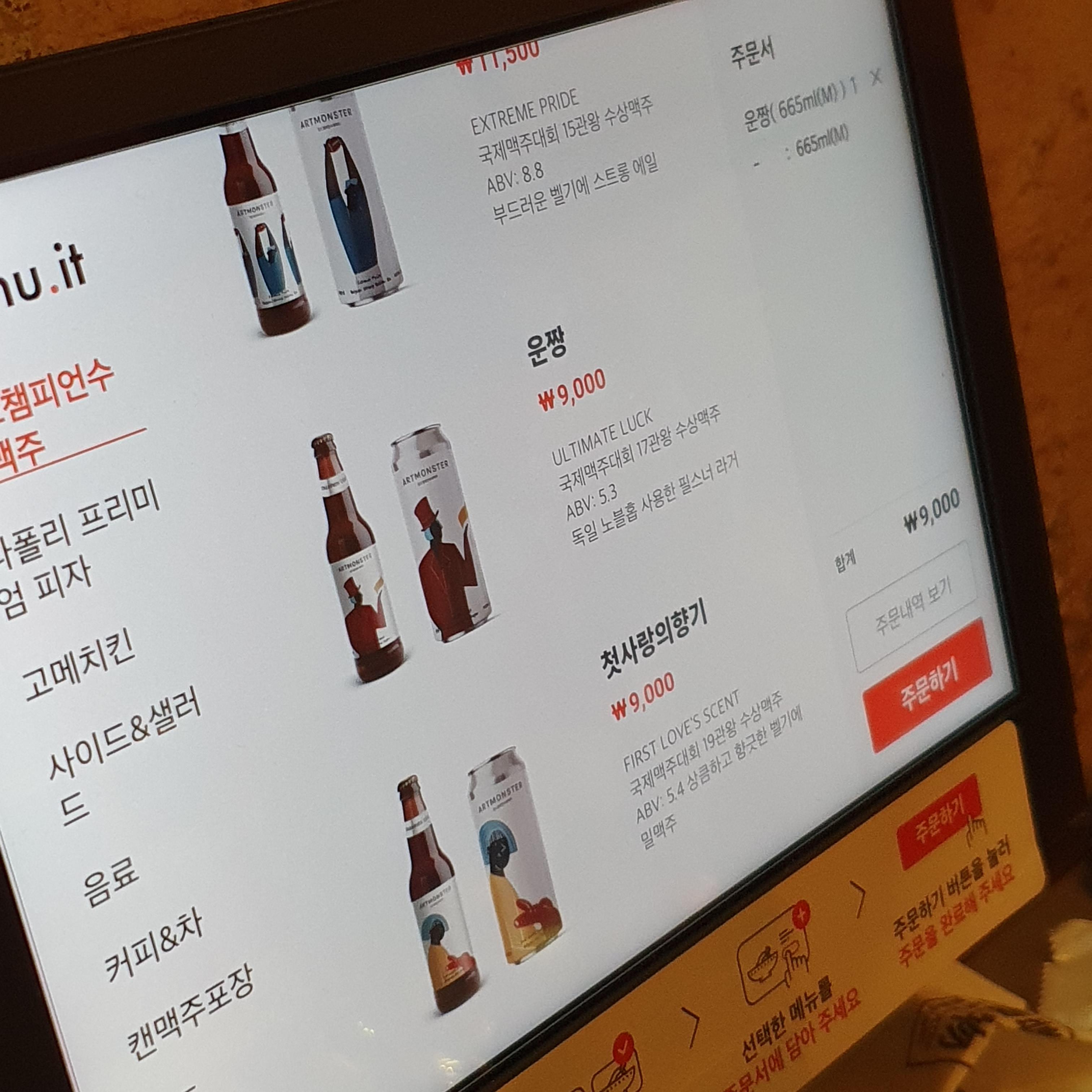 아트몬스터의 특징은 맥주를 용량별로 주문할 수 있다는 점 입니다.