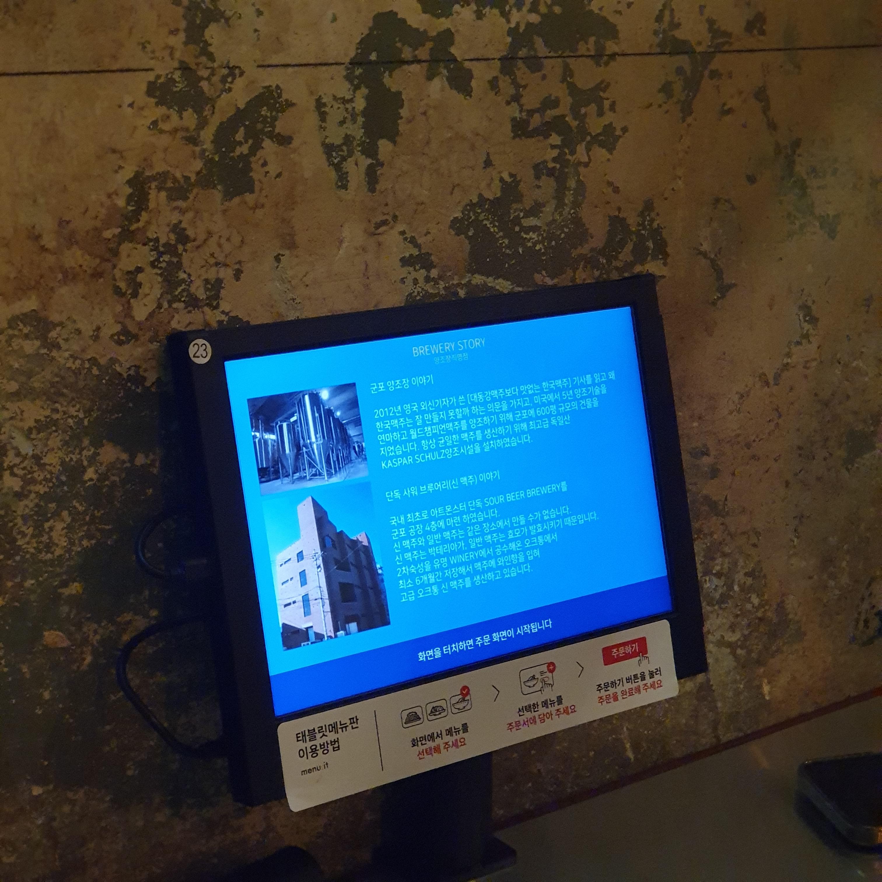 태블릿에서 메뉴를 확인할 수 있지만