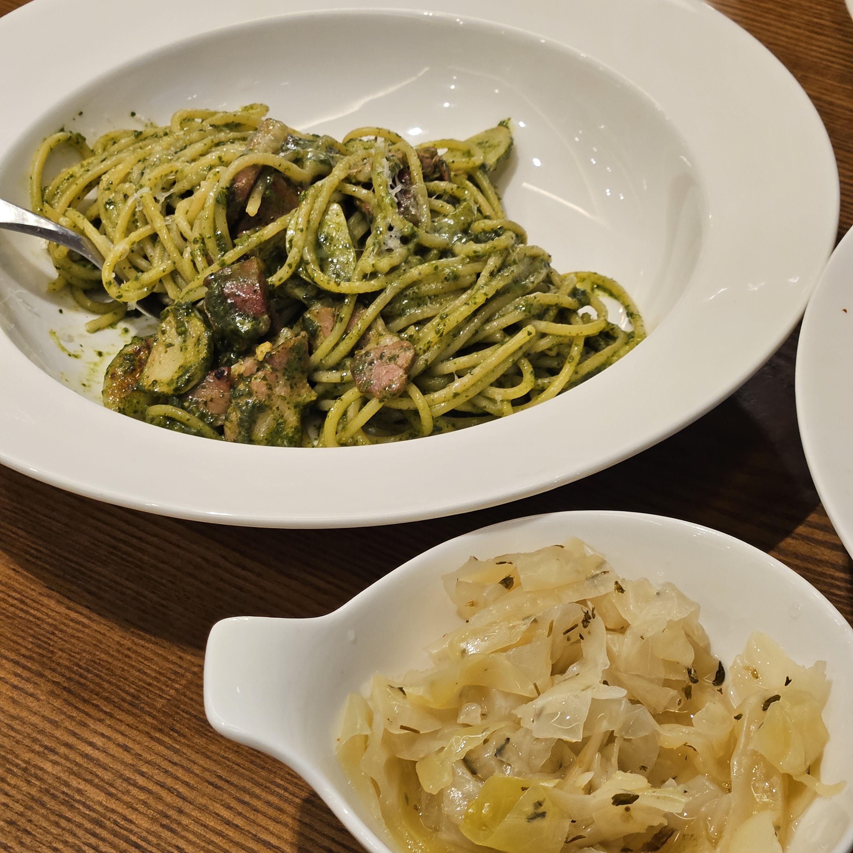 다른 걸 시도해보고 싶어해서 파스타를 시켰다.