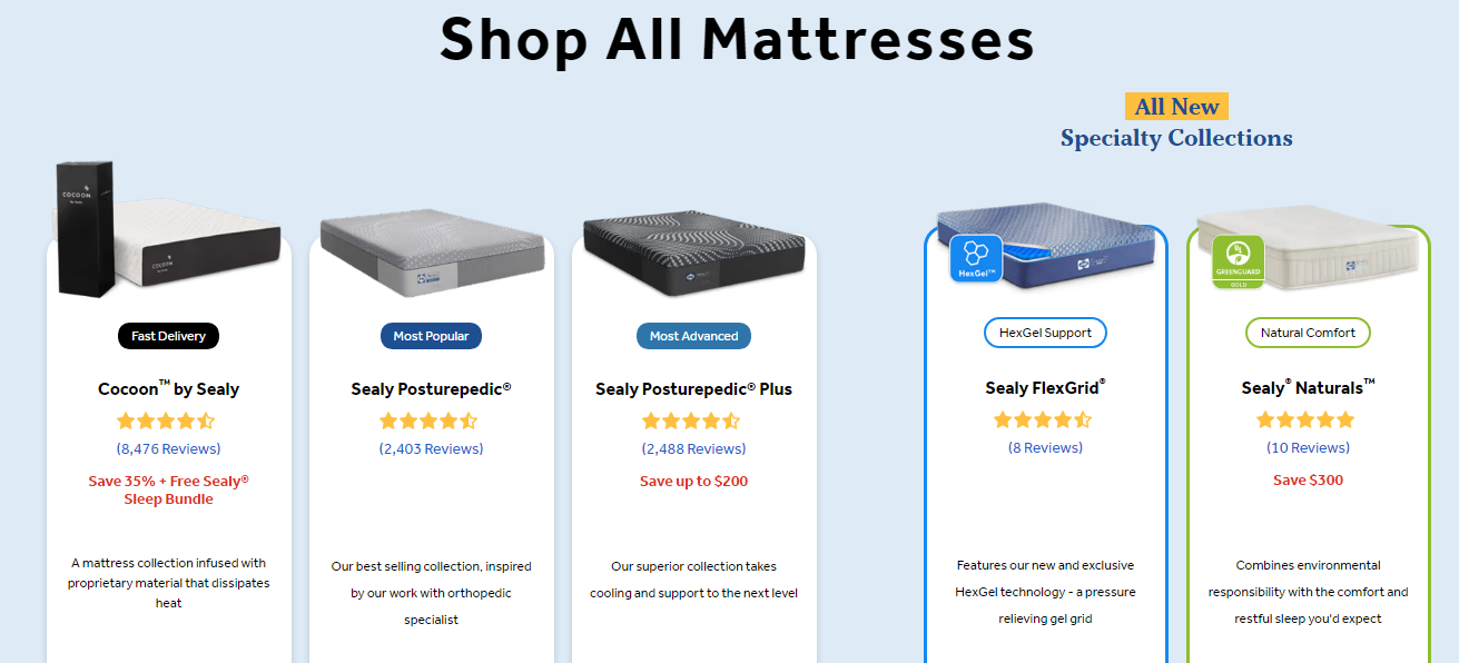 근데요, 씰리 사이트 가보면 모델엄청 많은데 이거 실제로 백화점이나 대리점 가보면 진짜 모델이 중구난방입니다.
