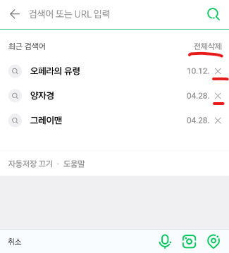 개별 항목을 삭제하고 싶으신 분들은 검색어 우측 끝에 "x" 를,