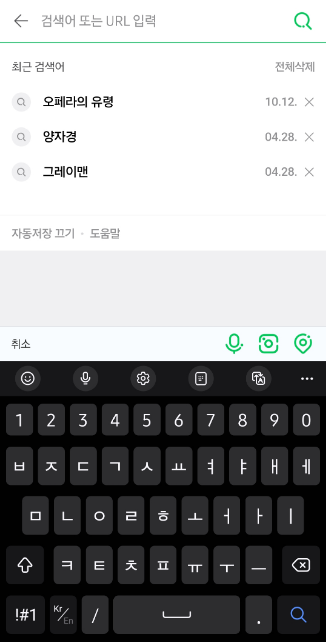 이제 검색 창을 한번 눌러보시면 그동안 검색했던 기록들이 나오게 됩니다.