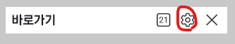 바로가기 창 우측 상단을 보시면 톱니바퀴(설정) 버튼이 있습니다.