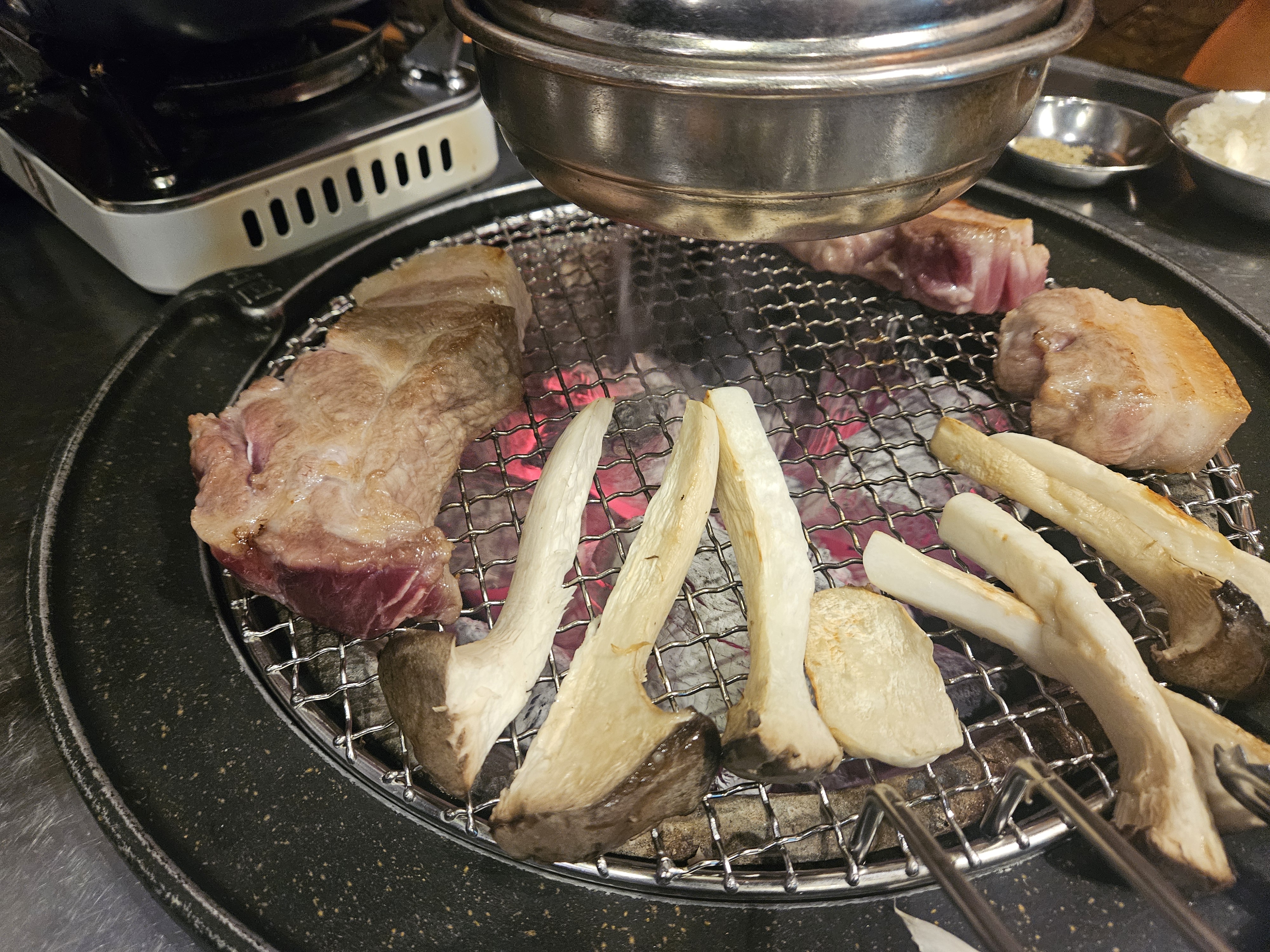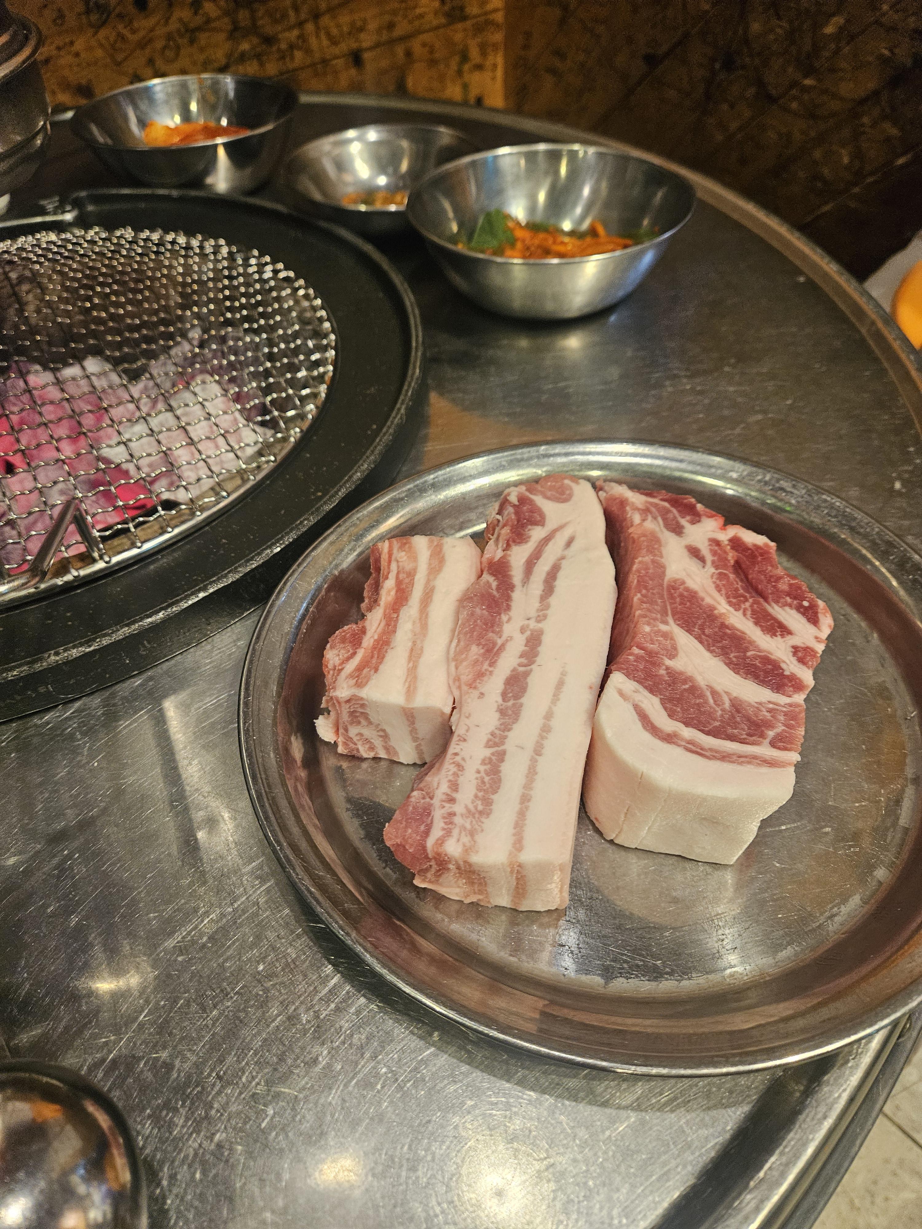 고기가 미친 듯이 두꺼운데 숯불이 정말 좋아서 크게 걱정은 안 해도 된다.