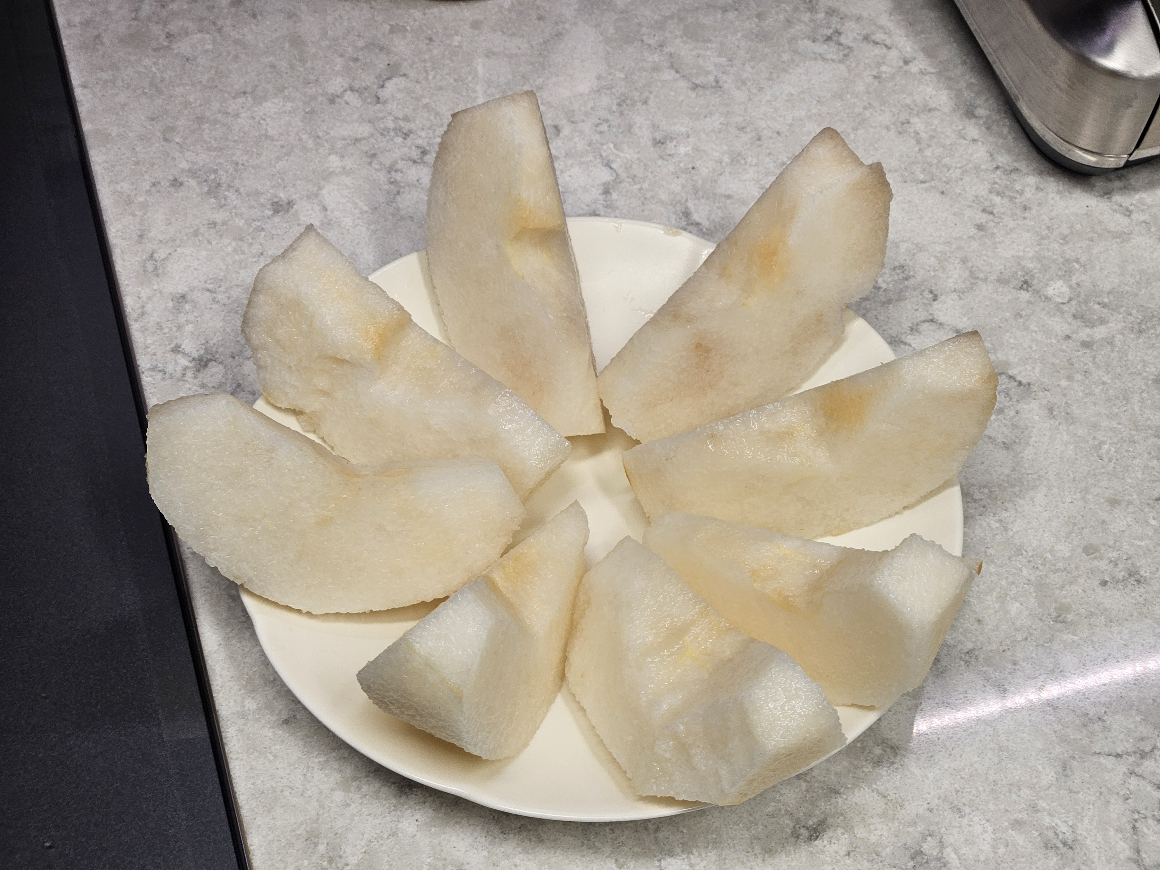 이쁜 그릇에 맛있는 배를 먹으니 기분이 좋습니다.