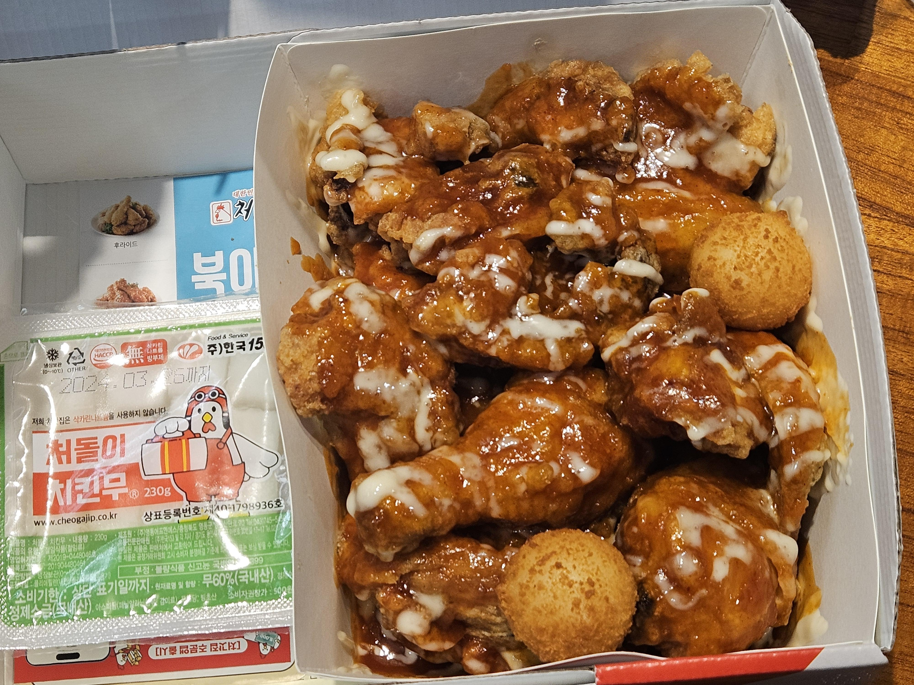 첫 입에는 약간 매콤하고 달콤한 게 그냥 양념치킨느낌은 아니다는 느낌이 들었어요.