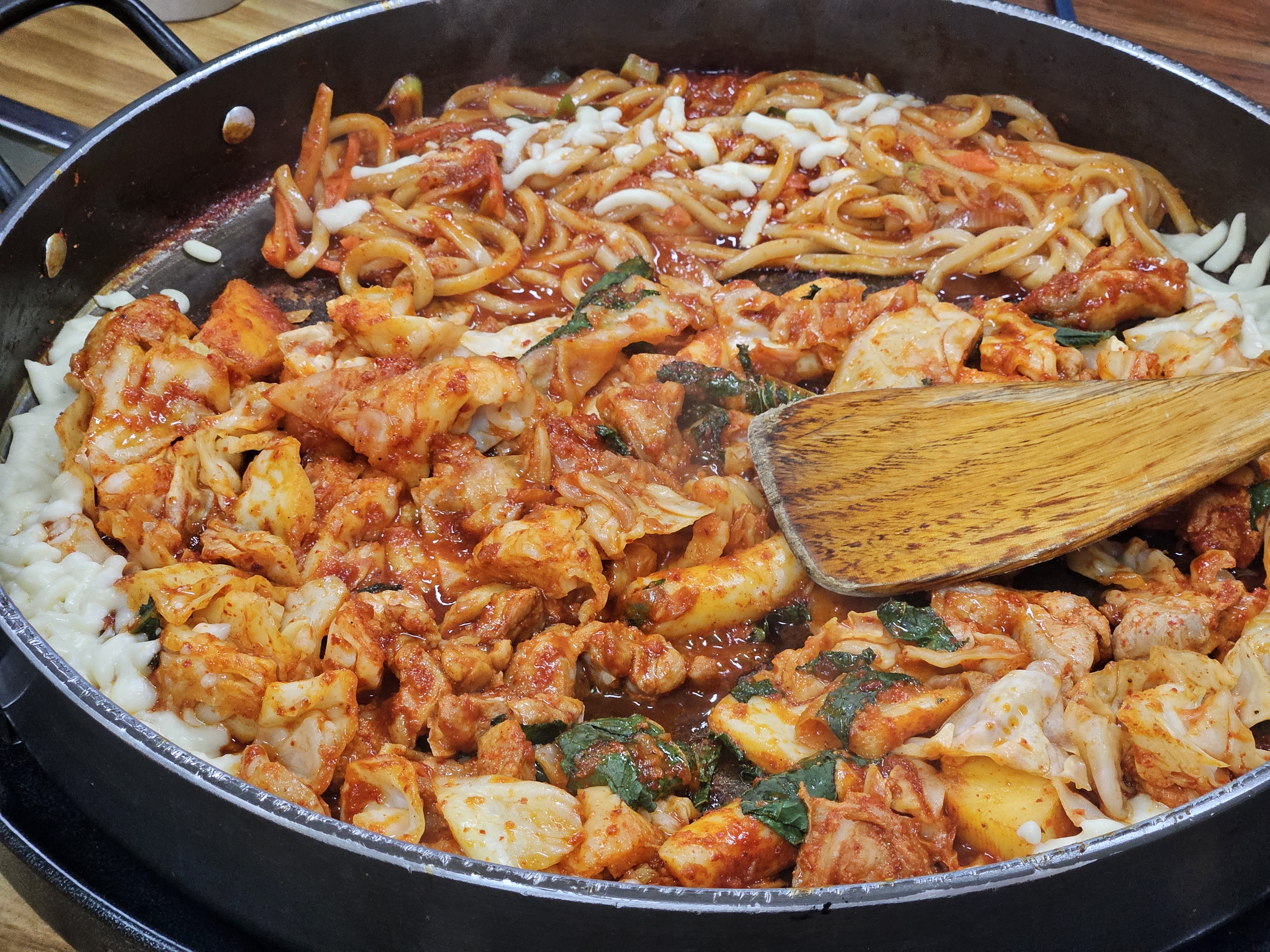 평소에는 닭갈비에 라면사리를 많이 넣어서 먹는데