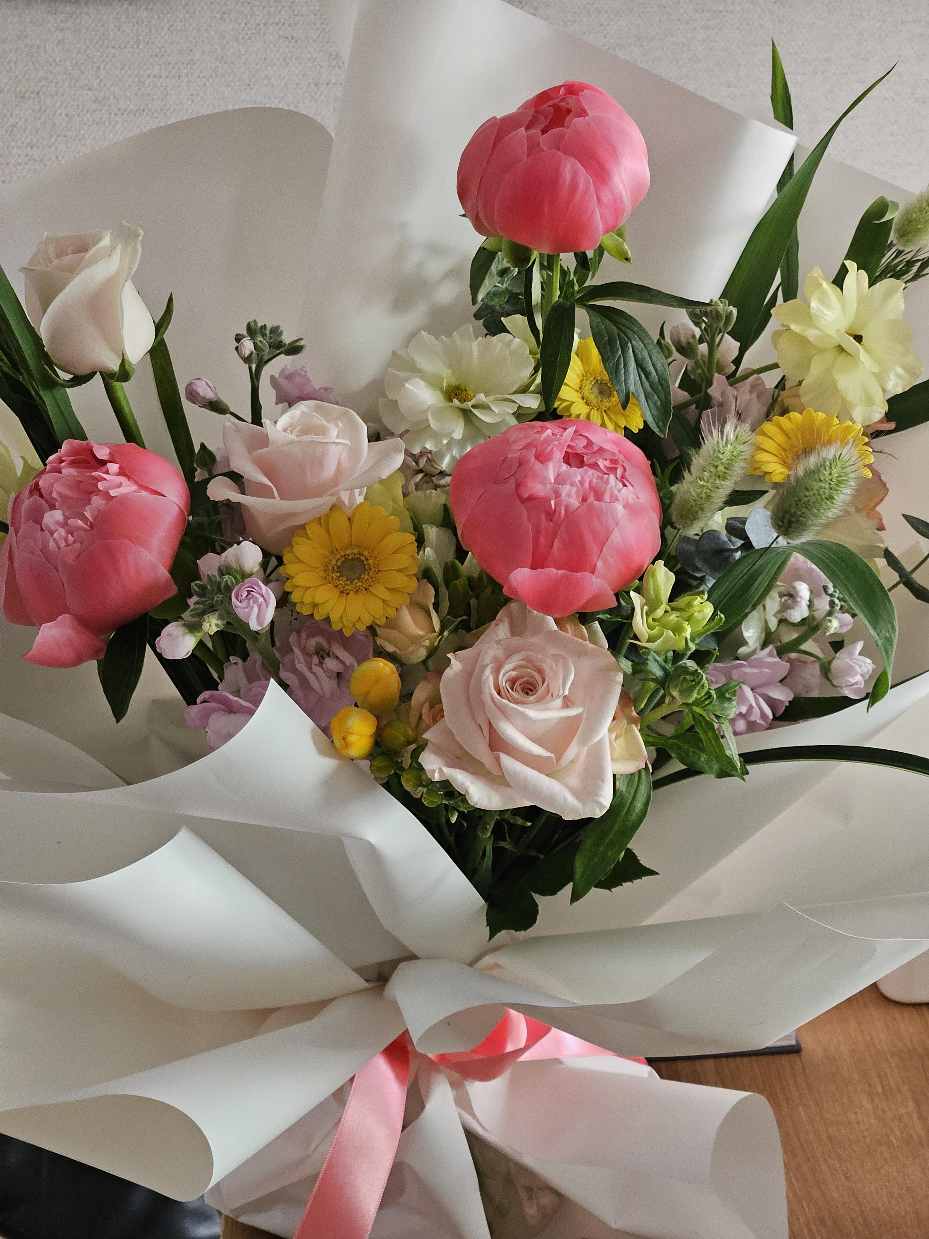 작약이 잎을 펴지 않아서 약간 긴가민가 했는데 집에가서 보니 정말 너무 이쁜 꽃다발이었습니다.