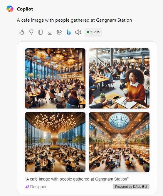 마이크로소프트 코파일럿은 이미지도 거뜬히 생성해 줍니다.