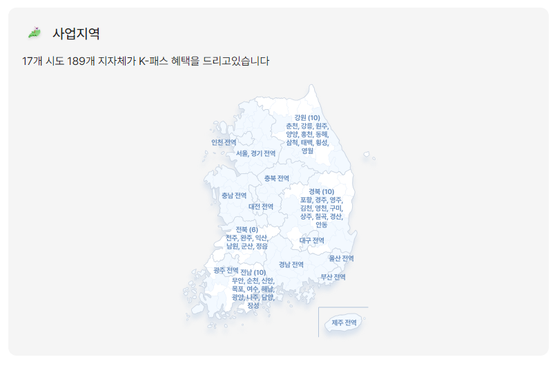 - K-패스 교통카드로 전국 대중교통 이용 시 이용금액의 일정 비율을 적립 및 지급