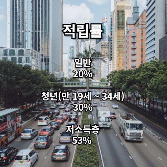 적립률은 일반 20%, 청년 30%, 저소득층 50% 입니다.