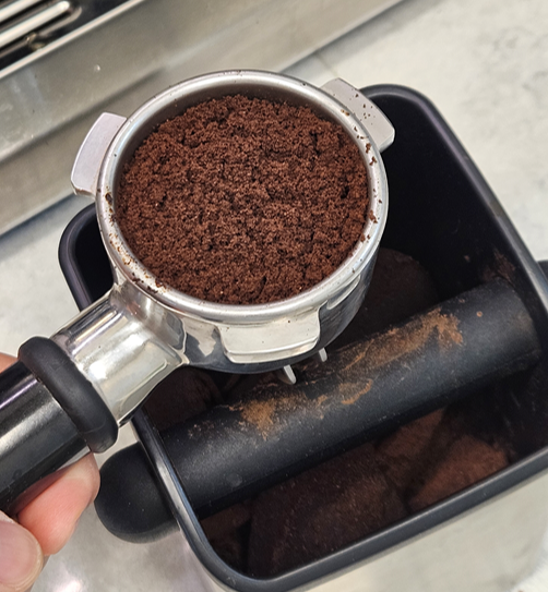 다시 나머지 원두를 내린다음 탬핑을 해줘야 합니다.