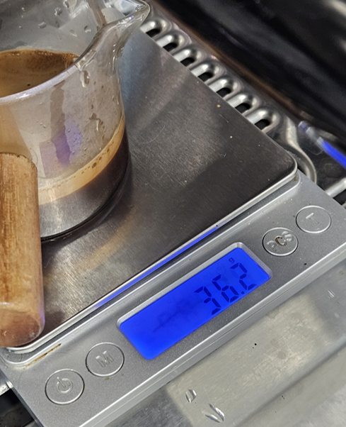 원두량 18g에 36.2g의 에스프레소를 추출했습니다.