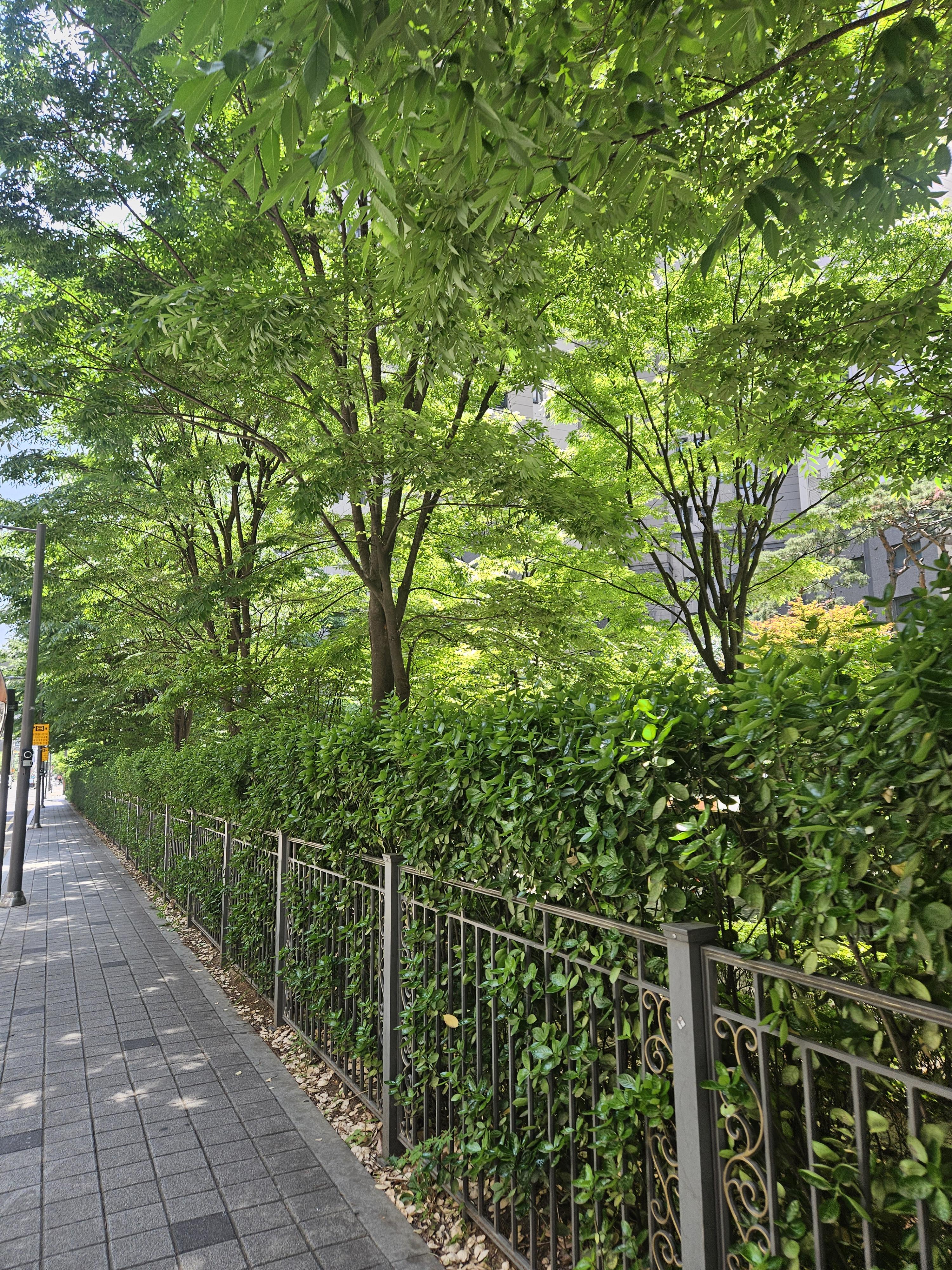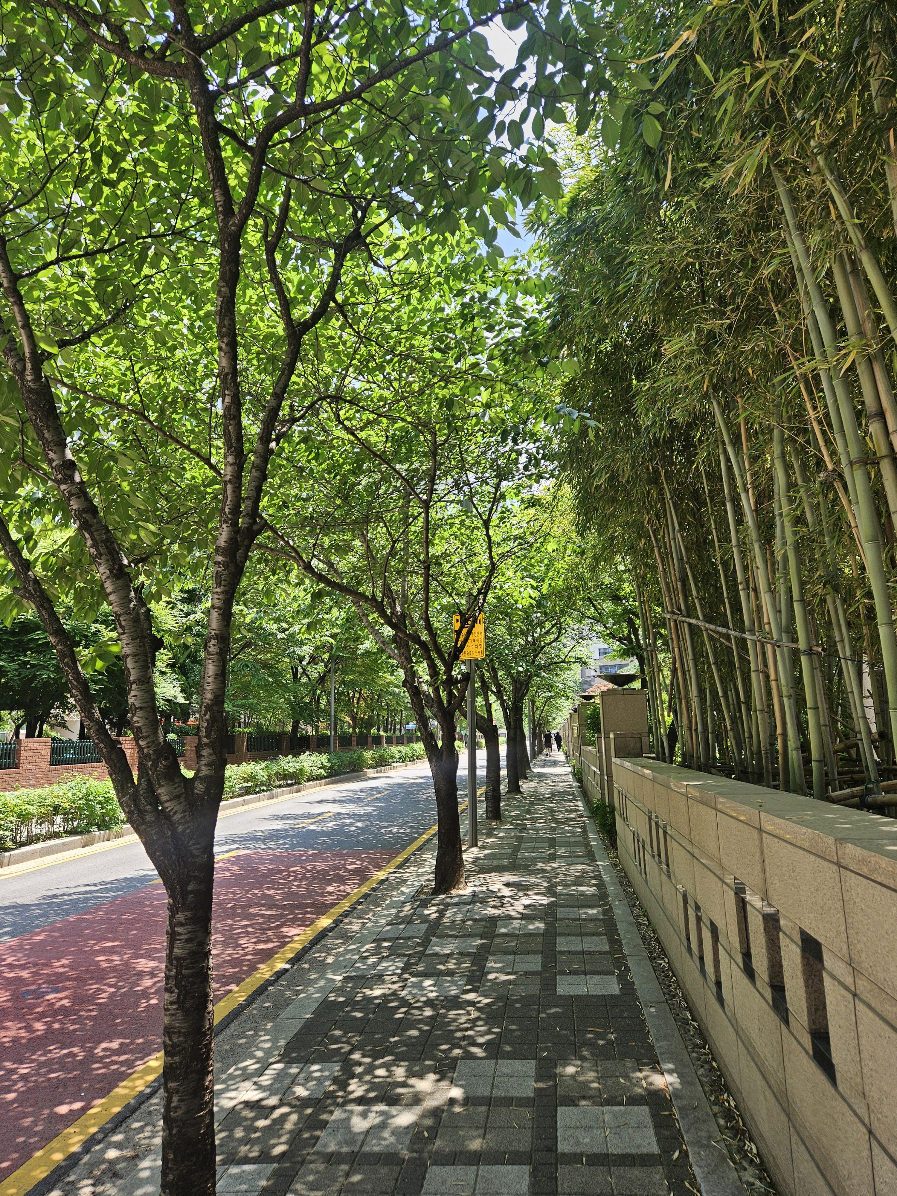 주변에 이렇게 나무가 있는 도로가 있어서 볕이 좋은 날에는 걷기가 좋을 것 같습니다.