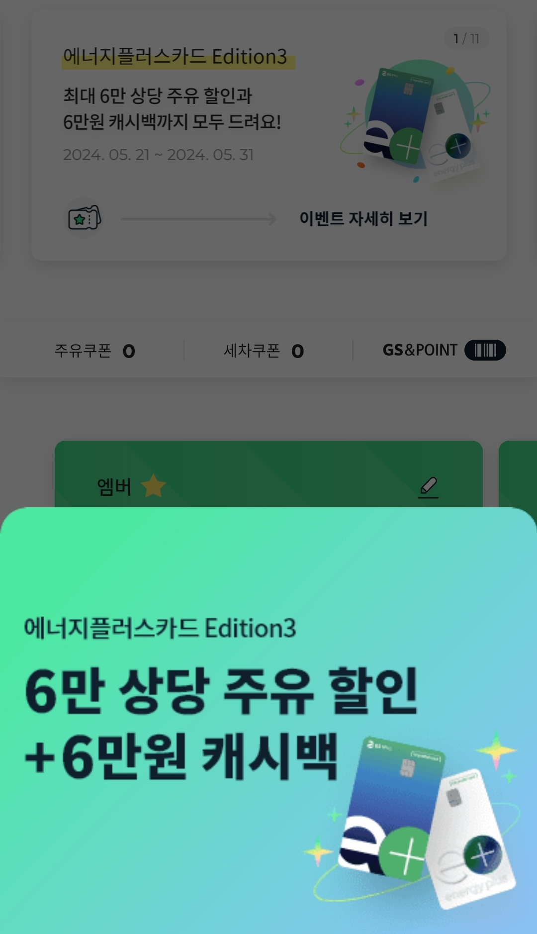 최근에 에너지플러스 앱에서 현대카드 에너지플러스 Edition3 카드 이벤트를 진행하고 있는 것 같습니다. ( ~5/31 까지 )