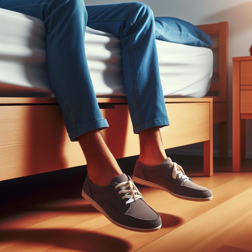가장 이상적인 침대 높이는 매트리스와 프레임 높이를 합쳐 침대에 걸터앉았을 때 다리 각도가 90도가 되는 것입니다.