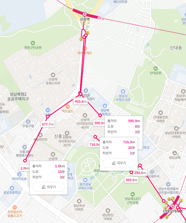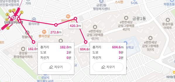 두 아파트 모두 대단지이다 보니, 실제 역과의 거리는 단지 및 동에 따라 유의미한 차이가 발생할 수 있습니다.