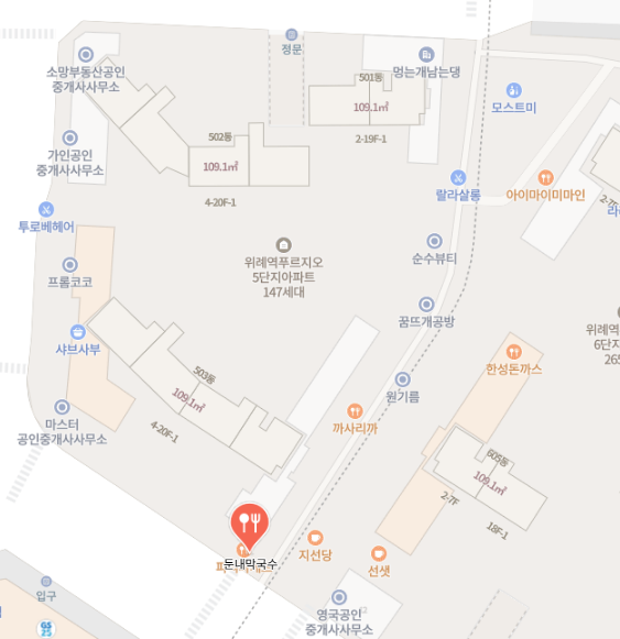 야외 복도에서 매장이 잘 보이지 않으니 참고하세요.
