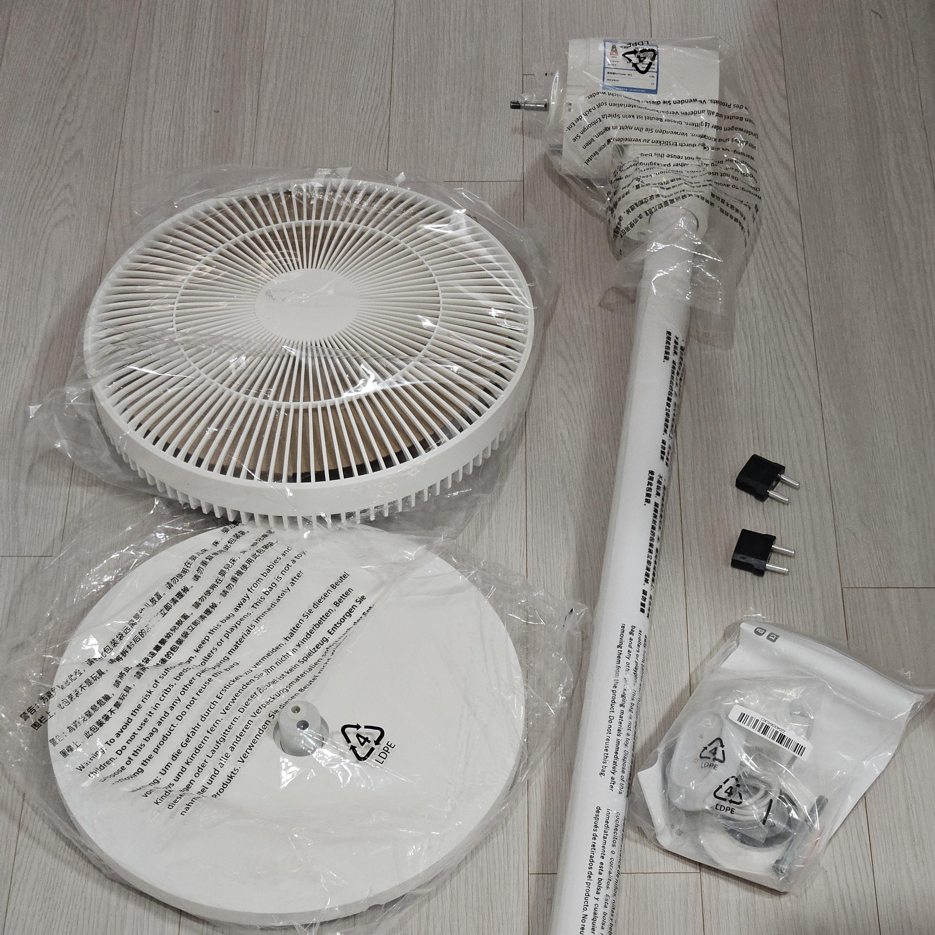선풍기 헤드, 목(모터), 몸체 그리고 몇 가지 나사들이 구성품으로 왔습니다.
