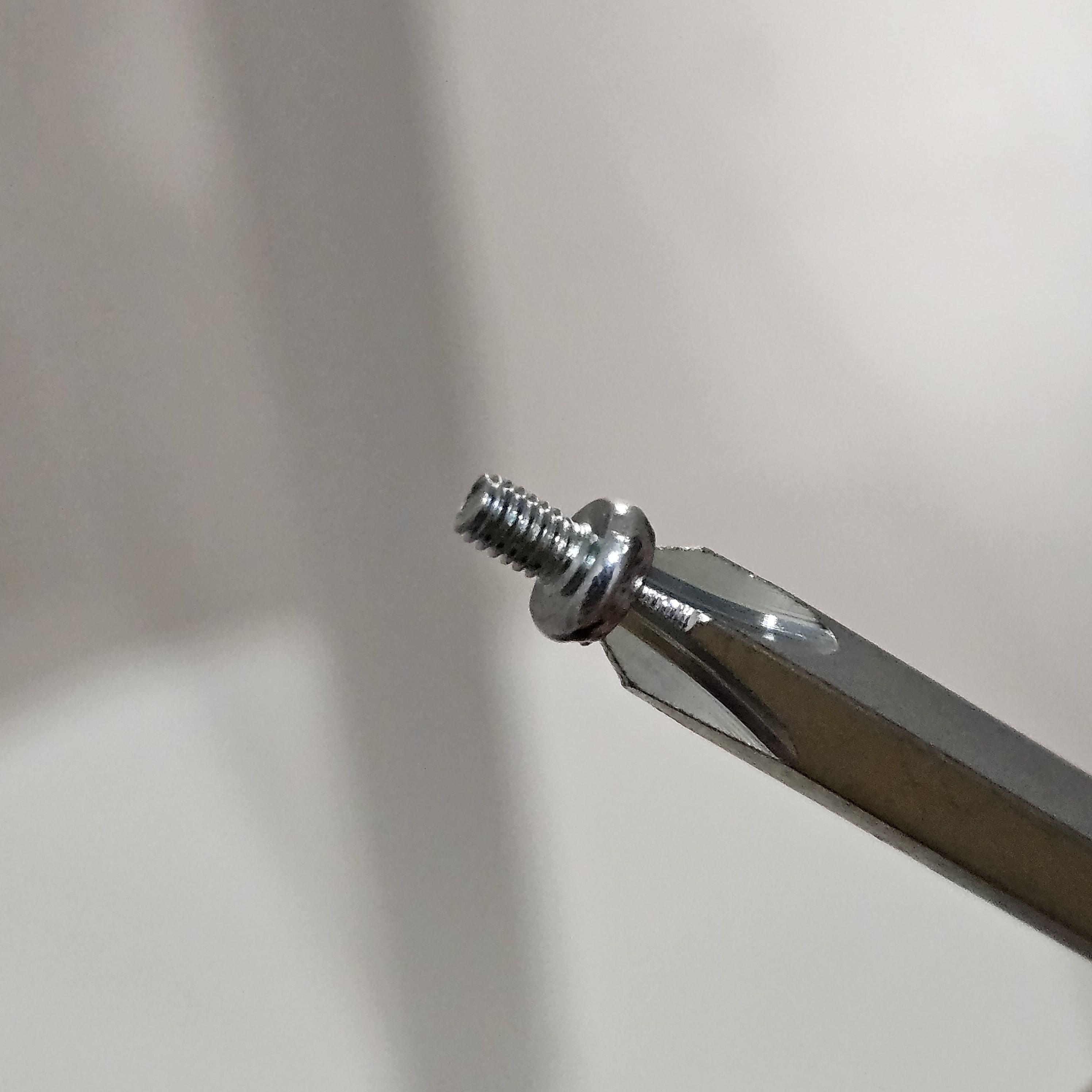 머리 하단에 보시면 구멍하나가 있는데요, 여기에 드라이버 하나만 돌려서 고정해 주면 모든 조립이 완료됩니다.
