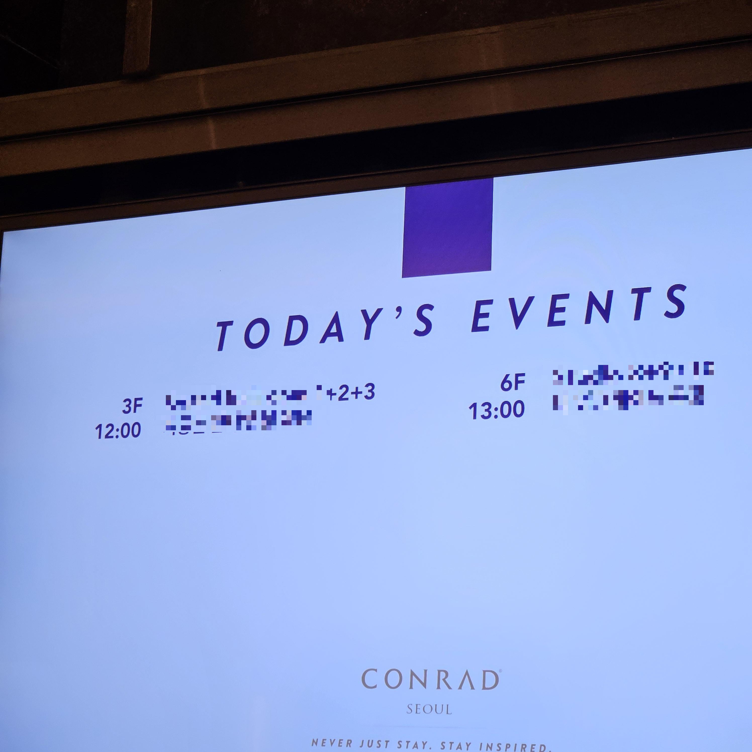 엘리베이터를 기다리면서 벽면에 달린 스크린을 보니 결혼식 일정을 보여주고 있습니다.