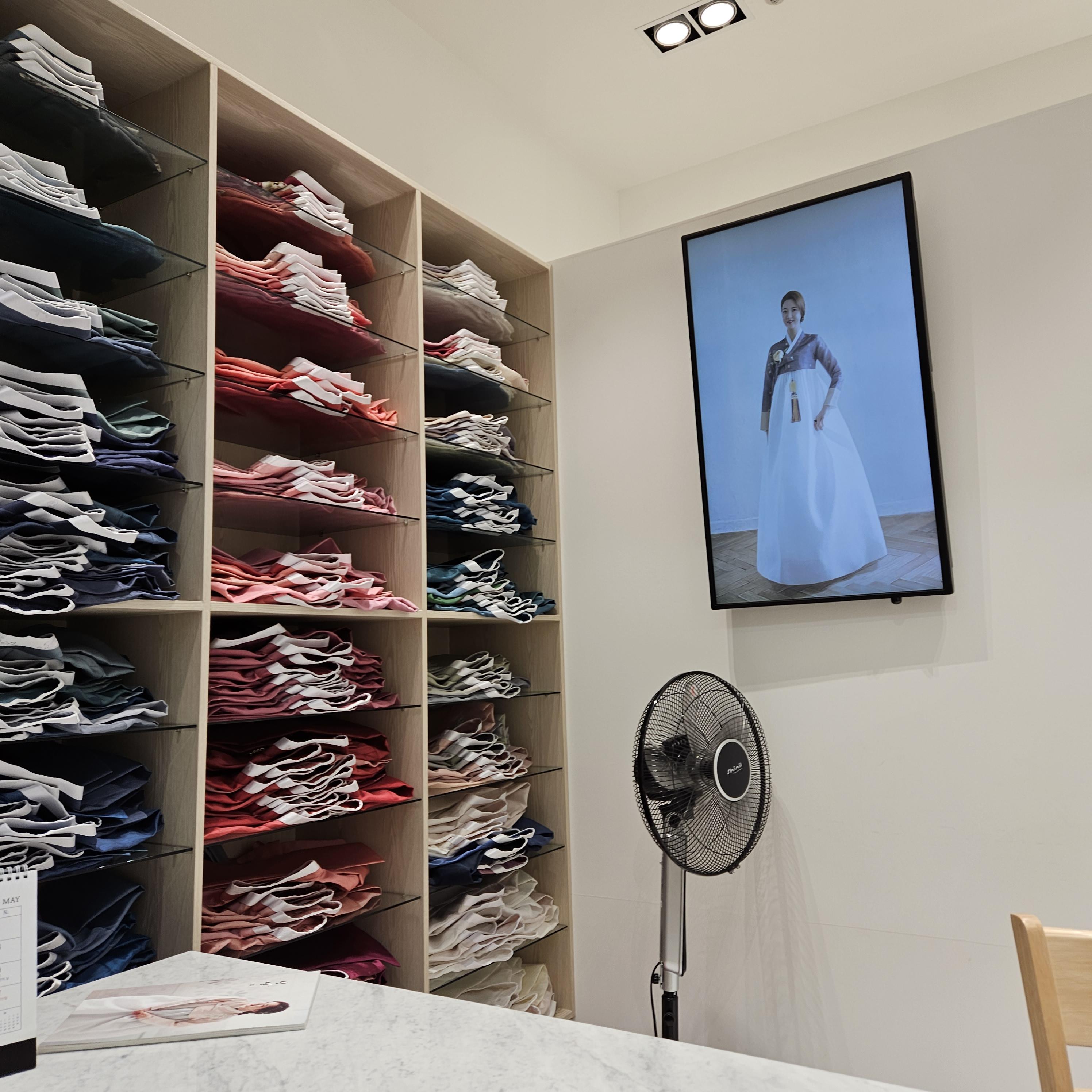 라코스테 매장 카라티 처럼 색깔별로 있는 한복 저고리들..