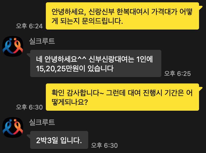 다른 한복업체들과 동일하게 2박 3일이었습니다.