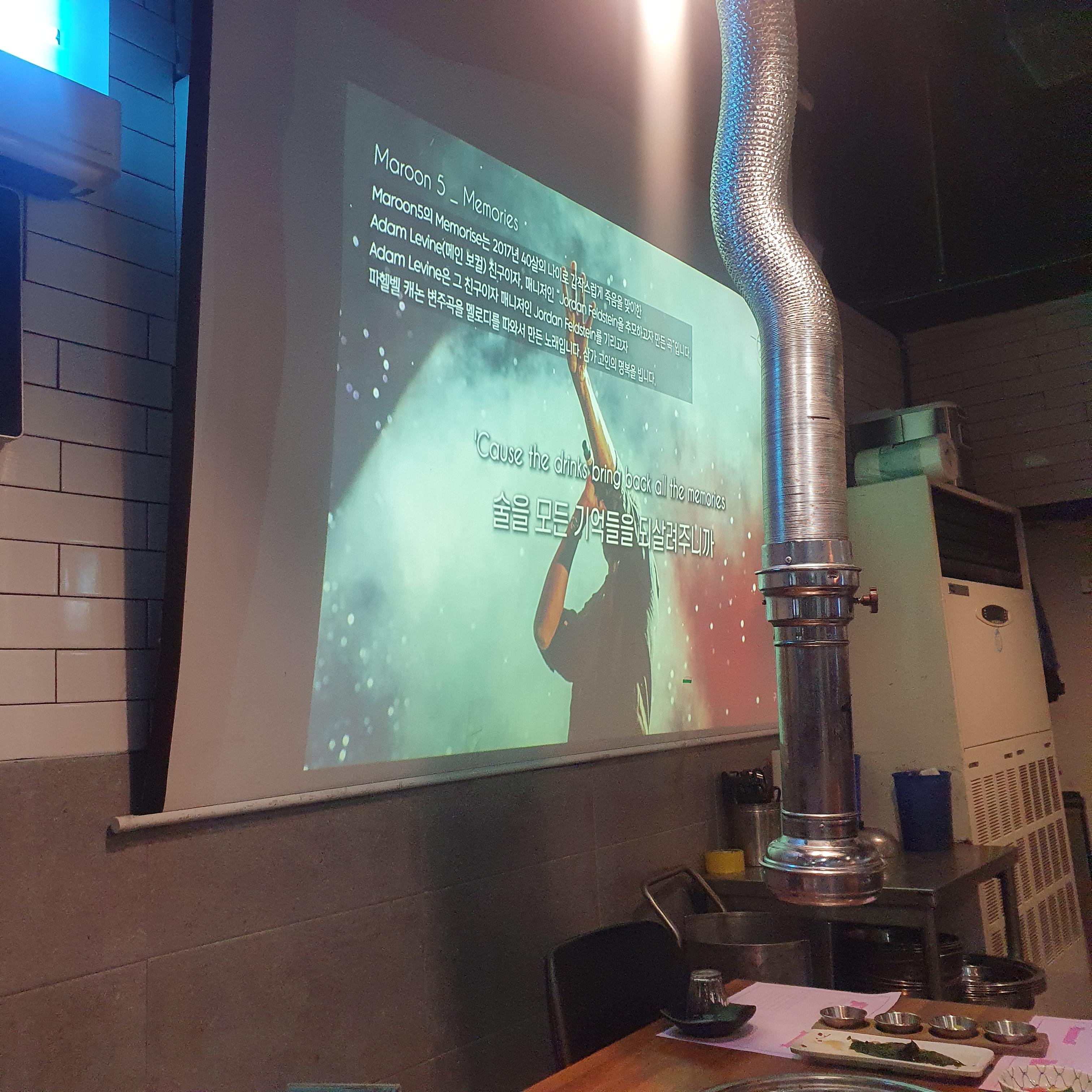 다소 특이한 점이 있다면 고깃집에 빔 프로젝터가 있어요.