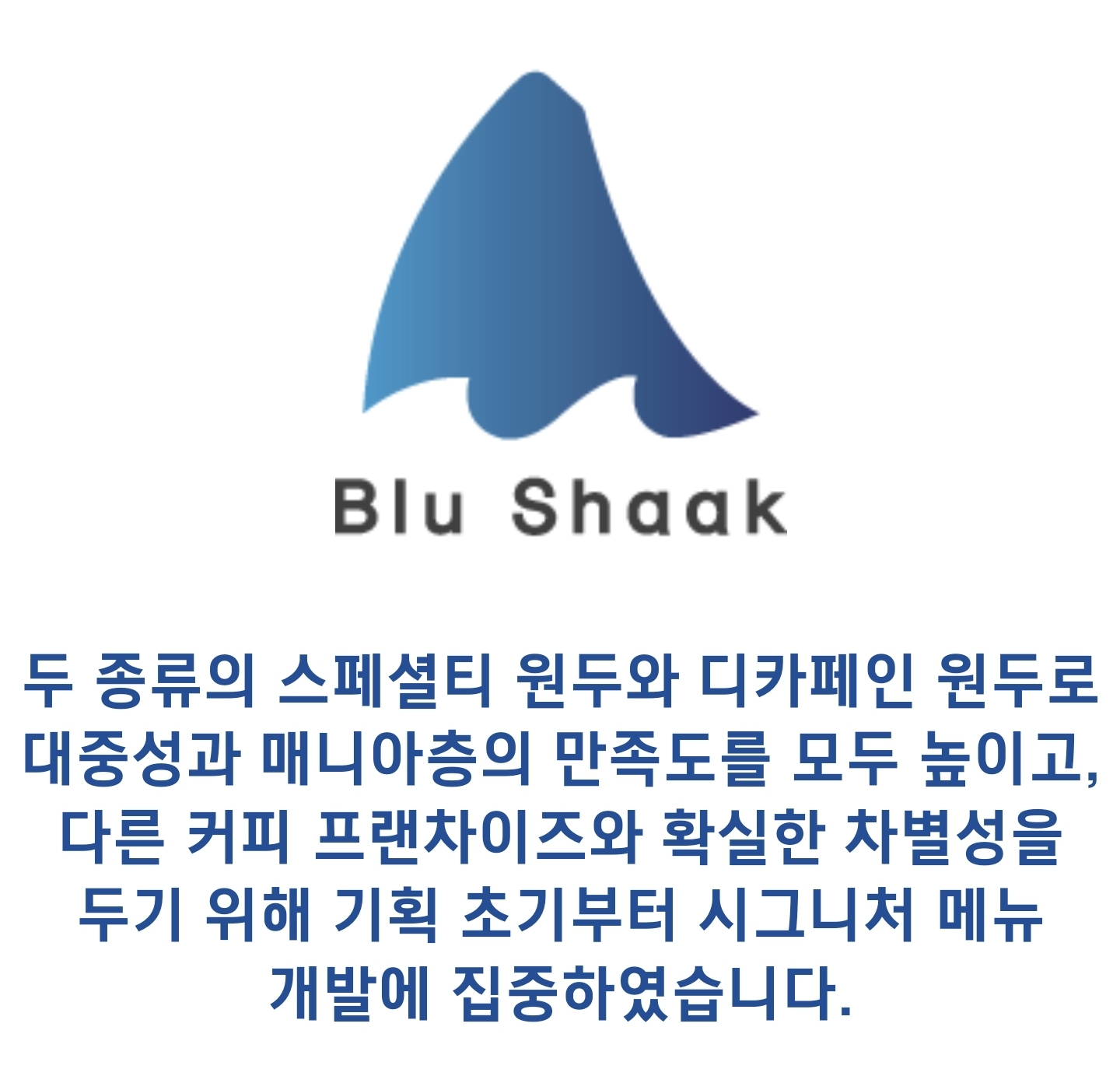 블루샥은 위에 나와있는 설명대로 두 종류의 스페셜티 원두를 기반으로 운영되고 있습니다.