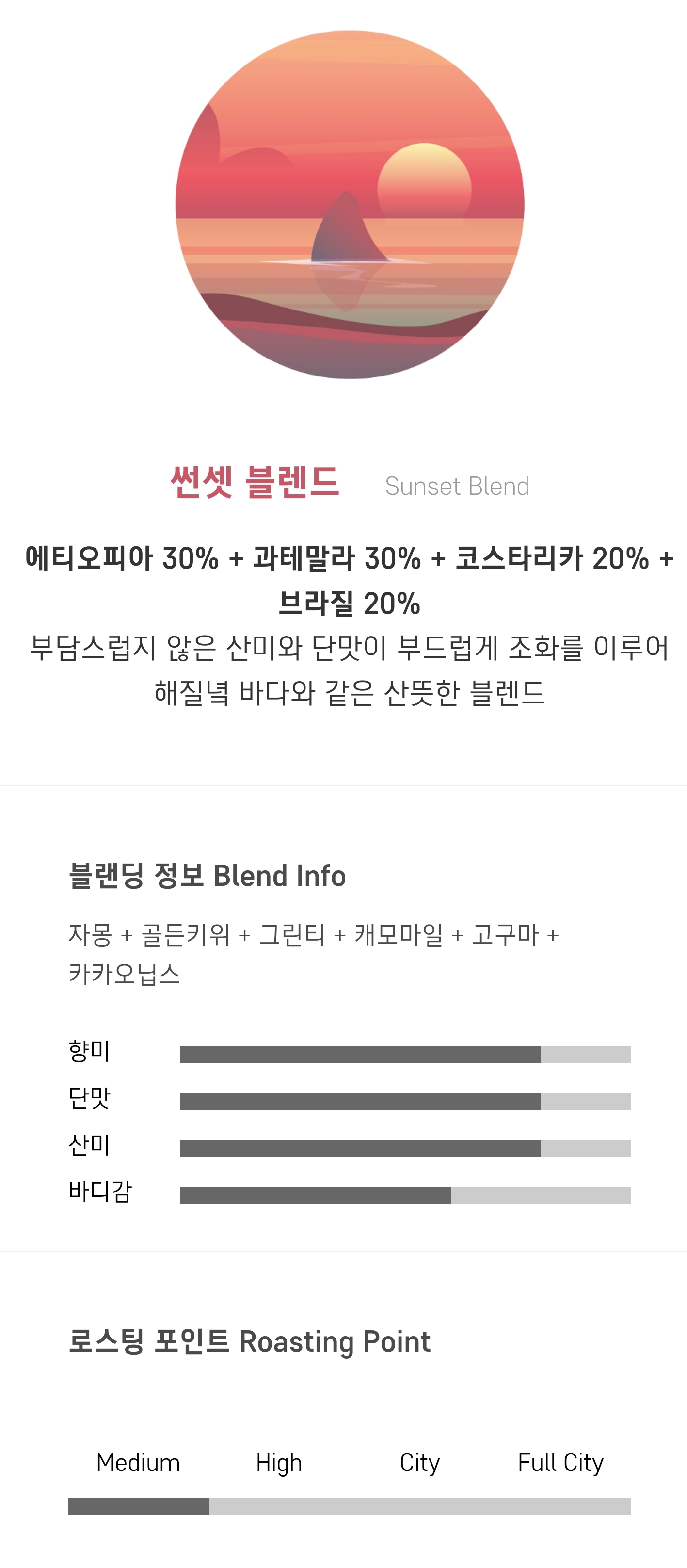 블랜딩 정보를 보면 상당히 밸런스에 신경 쓴 원두임을 알 수 있습니다.