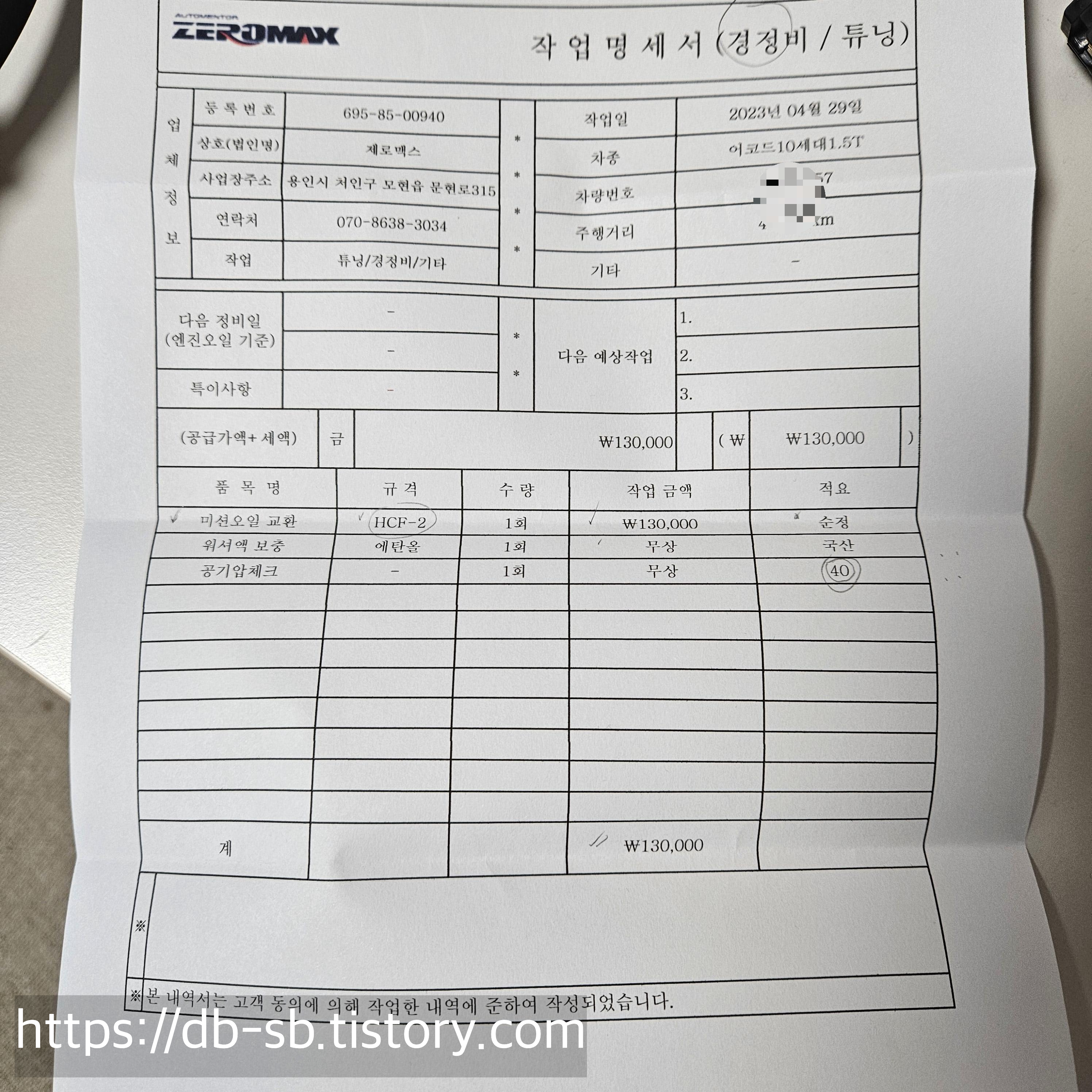 이런 명세서들 잘 관리해야 언제 차량작업을 했는지 기억할텐데