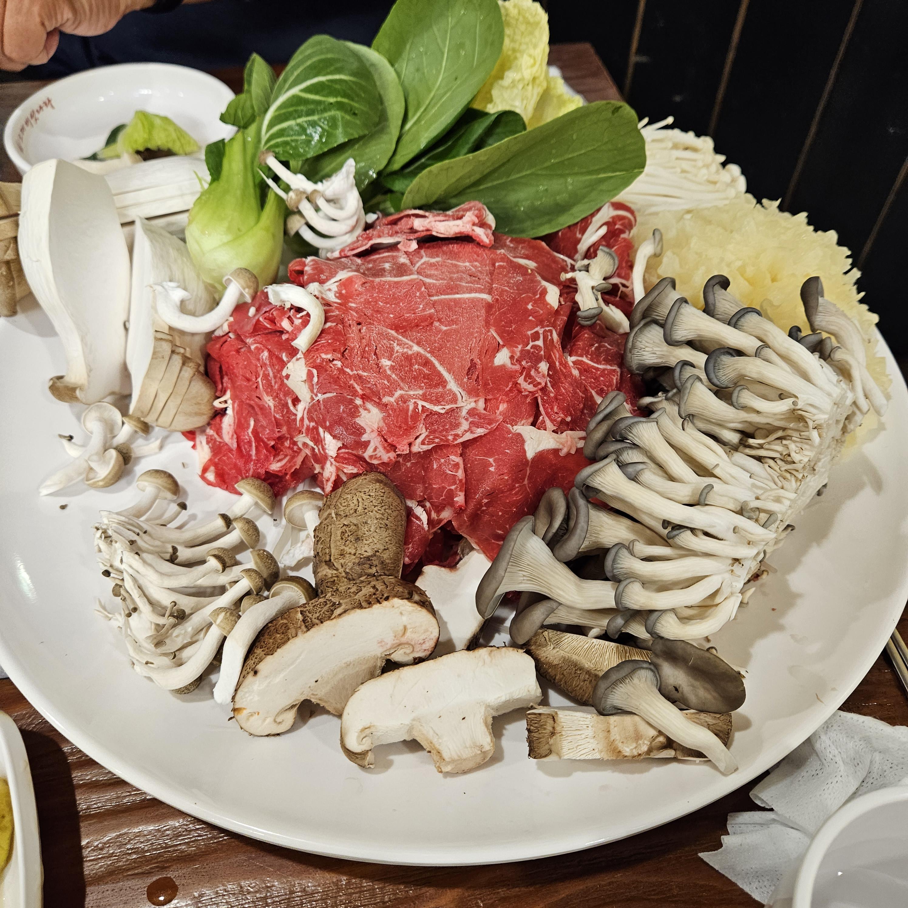 샤브샤브와 버섯, 야채는 한 판에 나왔습니다.